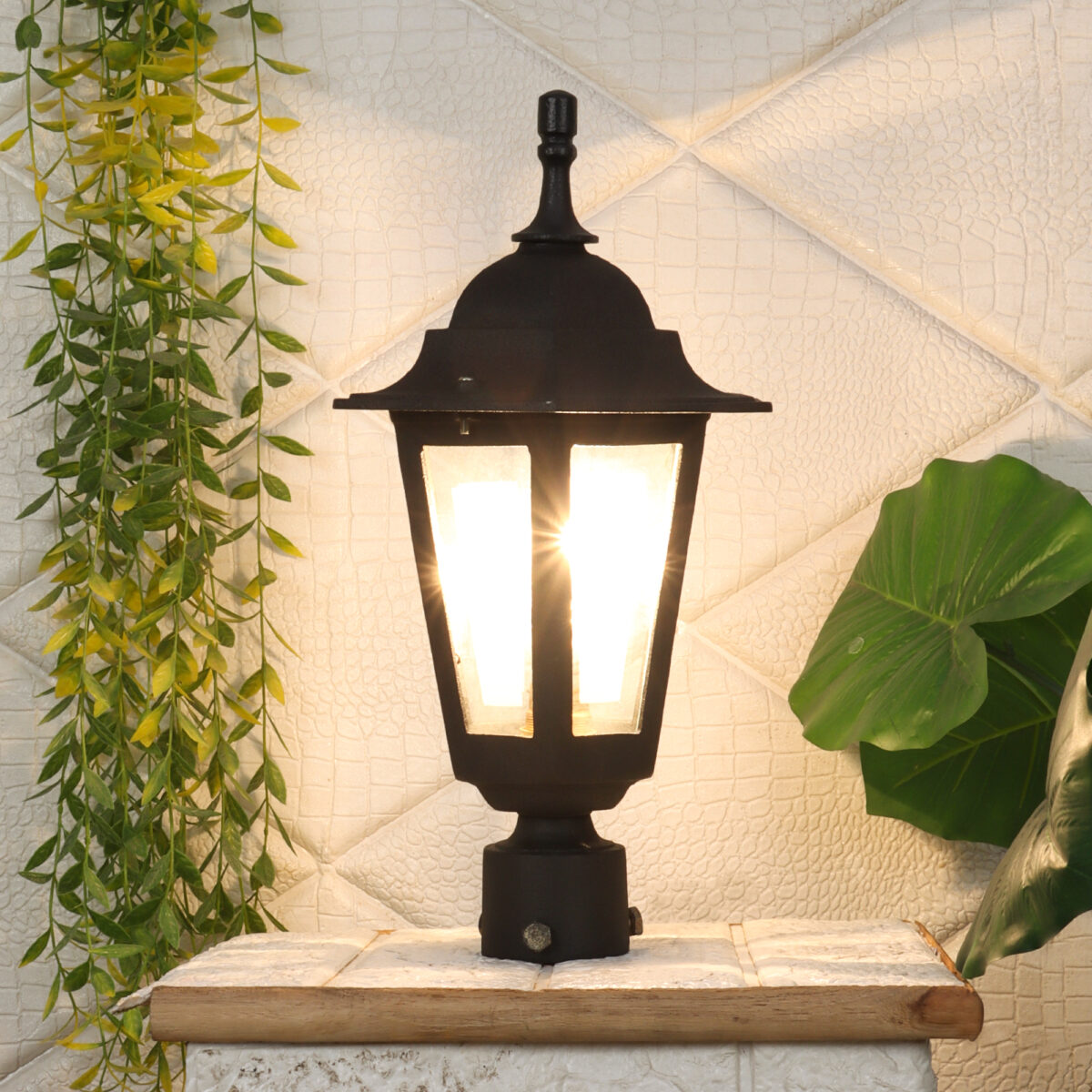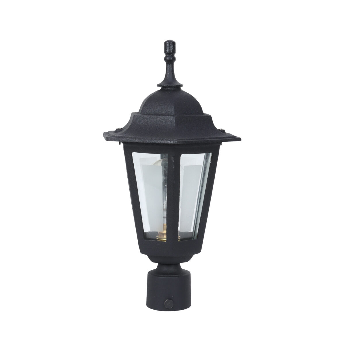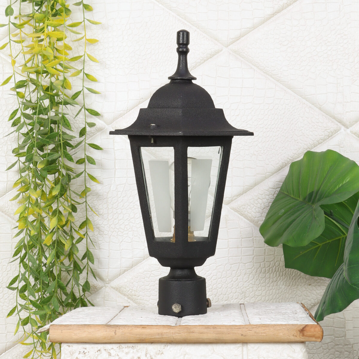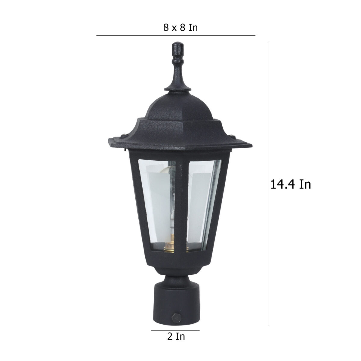 Traditional heavy duty aluminium die cast, gate pillar post light in black finish. It is maintenance free, comes with an B22 holder, only the change of lamp is required, which is available locally everywhere You can of course swap out the bulb for one that is dimmable, has a higher light output or a different color temperature. IP54 rated, providing protection from sprayed water in any direction and making this light perfect for use outdoors. Application areas include building entrance, on top of terrace walls, terrace gardens, boundary walls, open parking, stilt parking. LAMPS NOT INCLUDED.