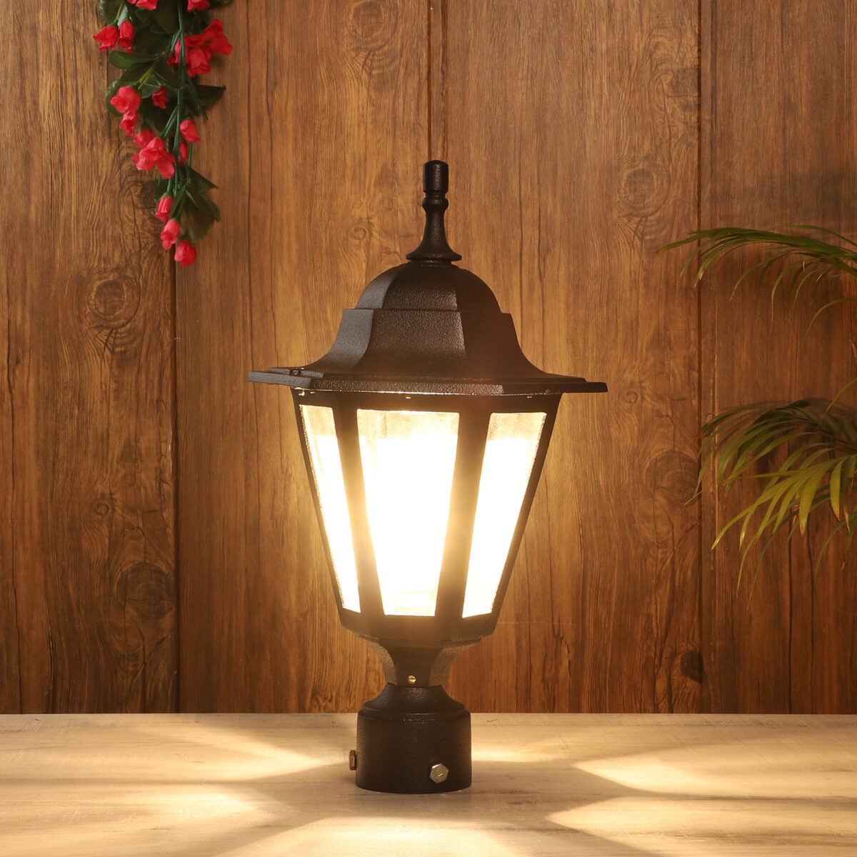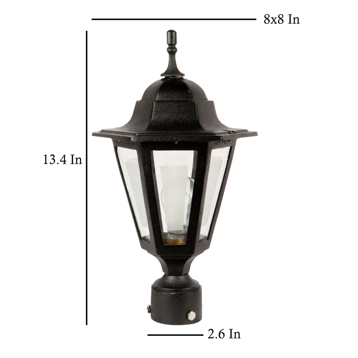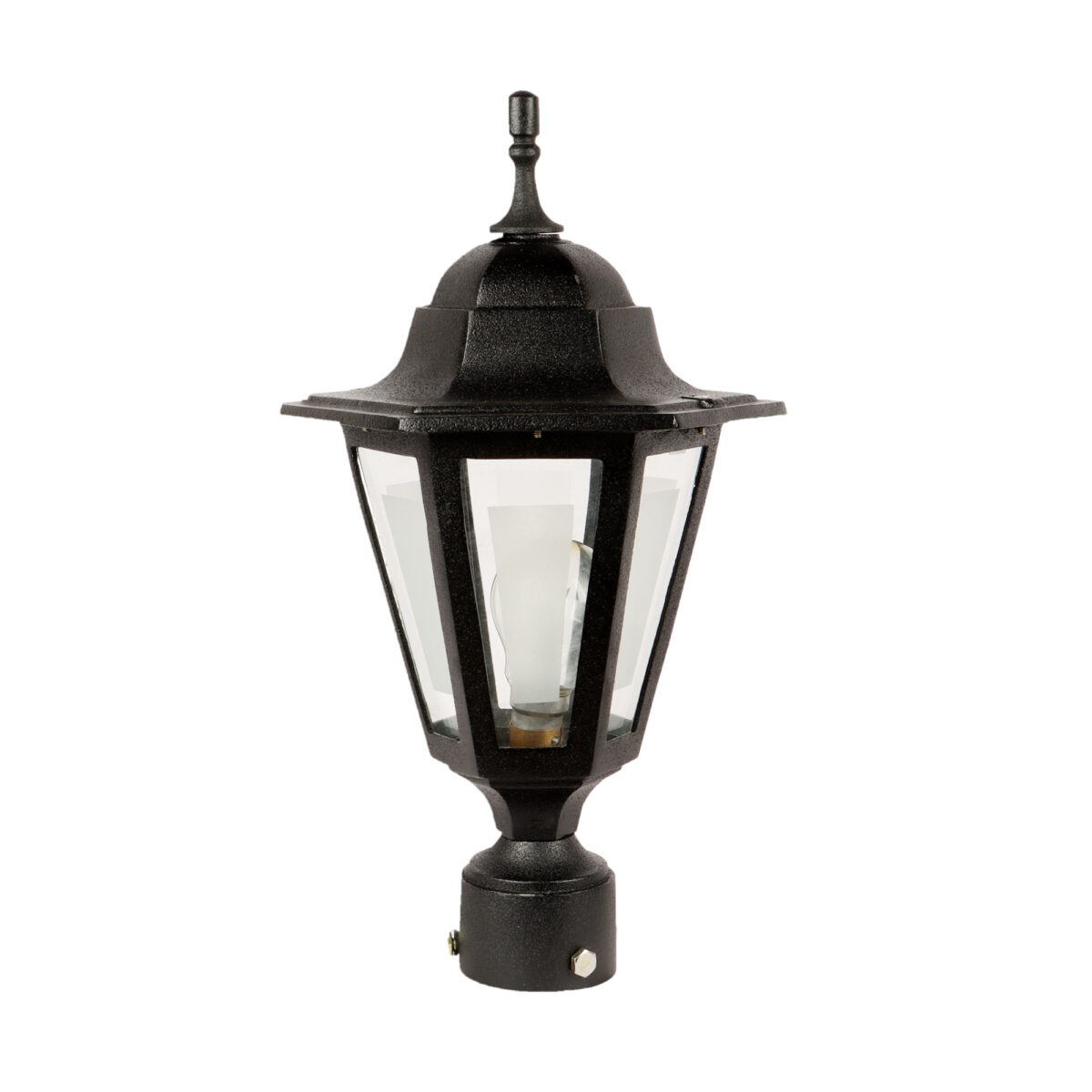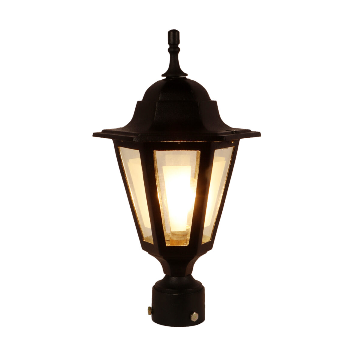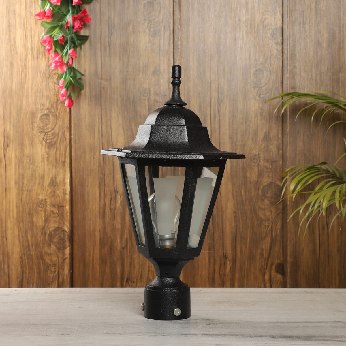 Traditional heavy duty aluminium die cast, gate pillar post light in black finish. It is maintenance free, comes with an B22 holder, only the change of lamp is required, which is available locally everywhere You can of course swap out the bulb for one that is dimmable, has a higher light output or a different color temperature. IP54 rated, providing protection from sprayed water in any direction and making this light perfect for use outdoors. Application areas include building entrance, on top of terrace walls, terrace gardens, boundary walls, open parking, stilt parking. Matching wall light – WL1974.