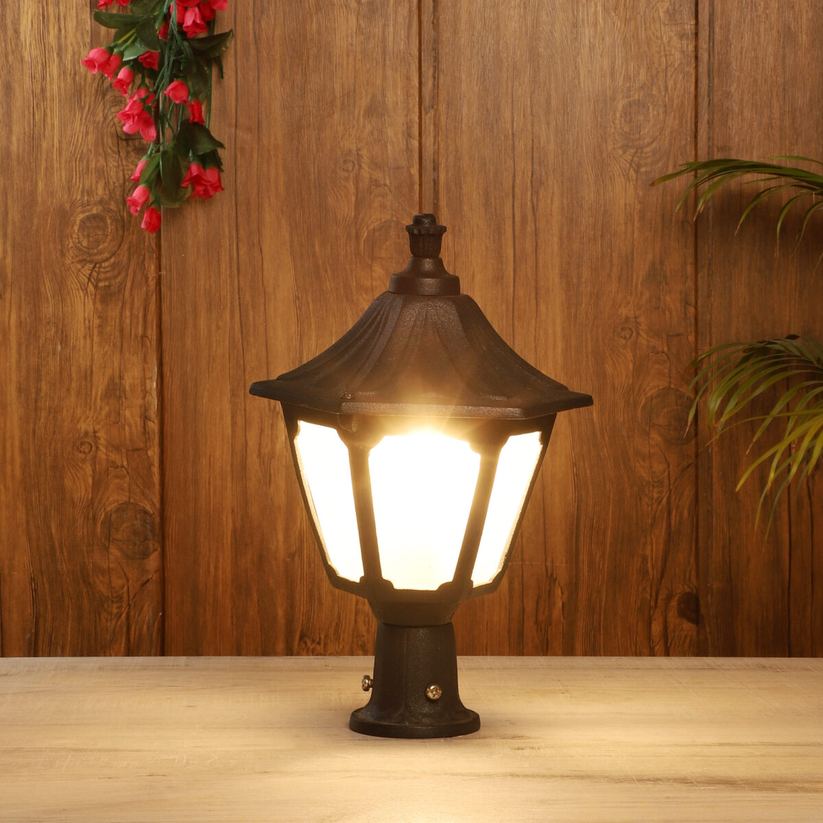 Traditional heavy duty aluminium die cast, gate pillar post light in black finish. It is maintenance free, comes with an B22 holder, only the change of lamp is required, which is available locally everywhere You can of course swap out the bulb for one that is dimmable, has a higher light output or a different color temperature. IP54 rated, providing protection from sprayed water in any direction and making this light perfect for use outdoors. Application areas include building entrance, on top of terrace walls, terrace gardens, boundary walls, open parking, stilt parking. Available in three sizes with code GL4754-M, GL4754-L. Matching wall light – WL1970, WL1971.
