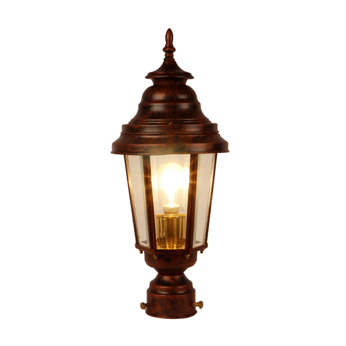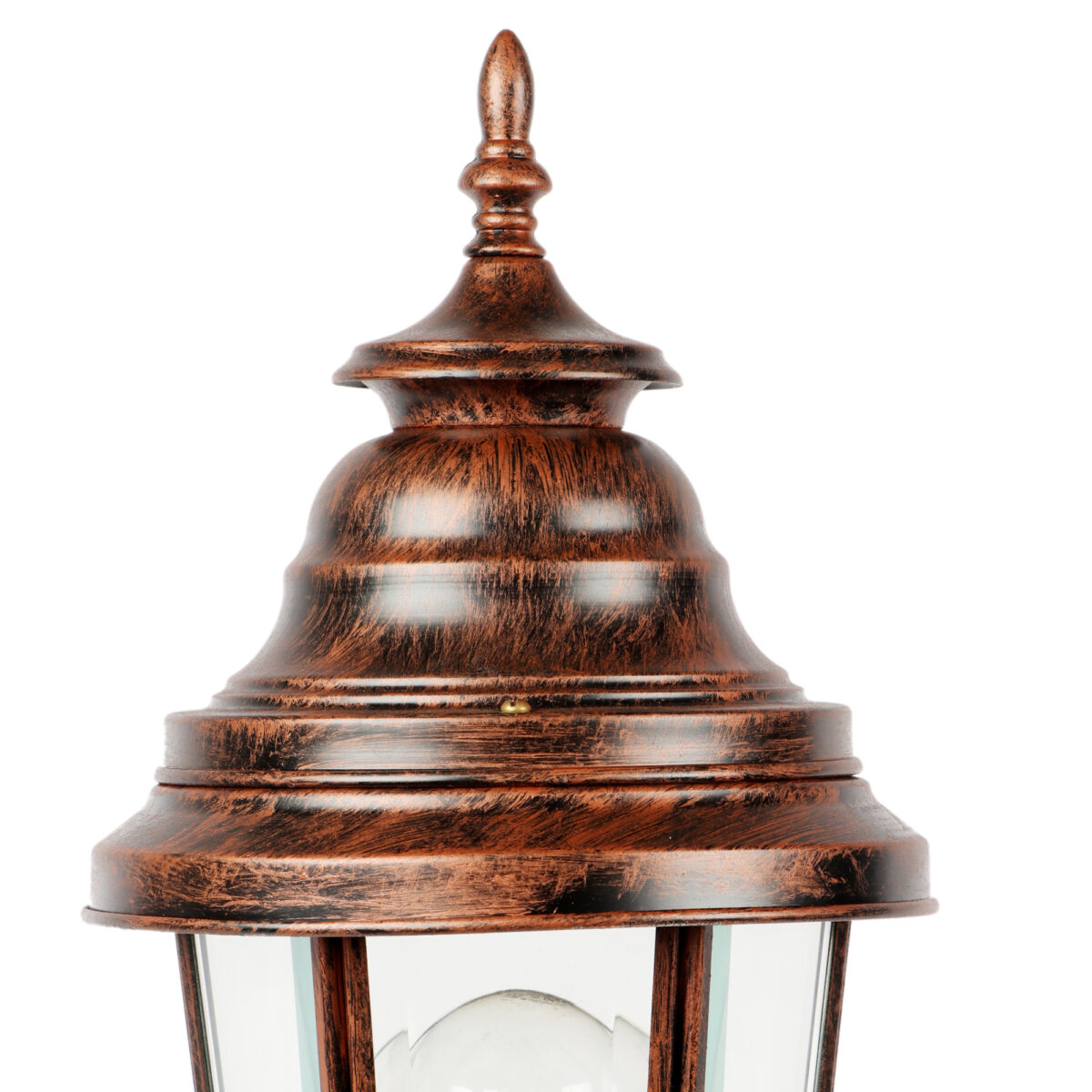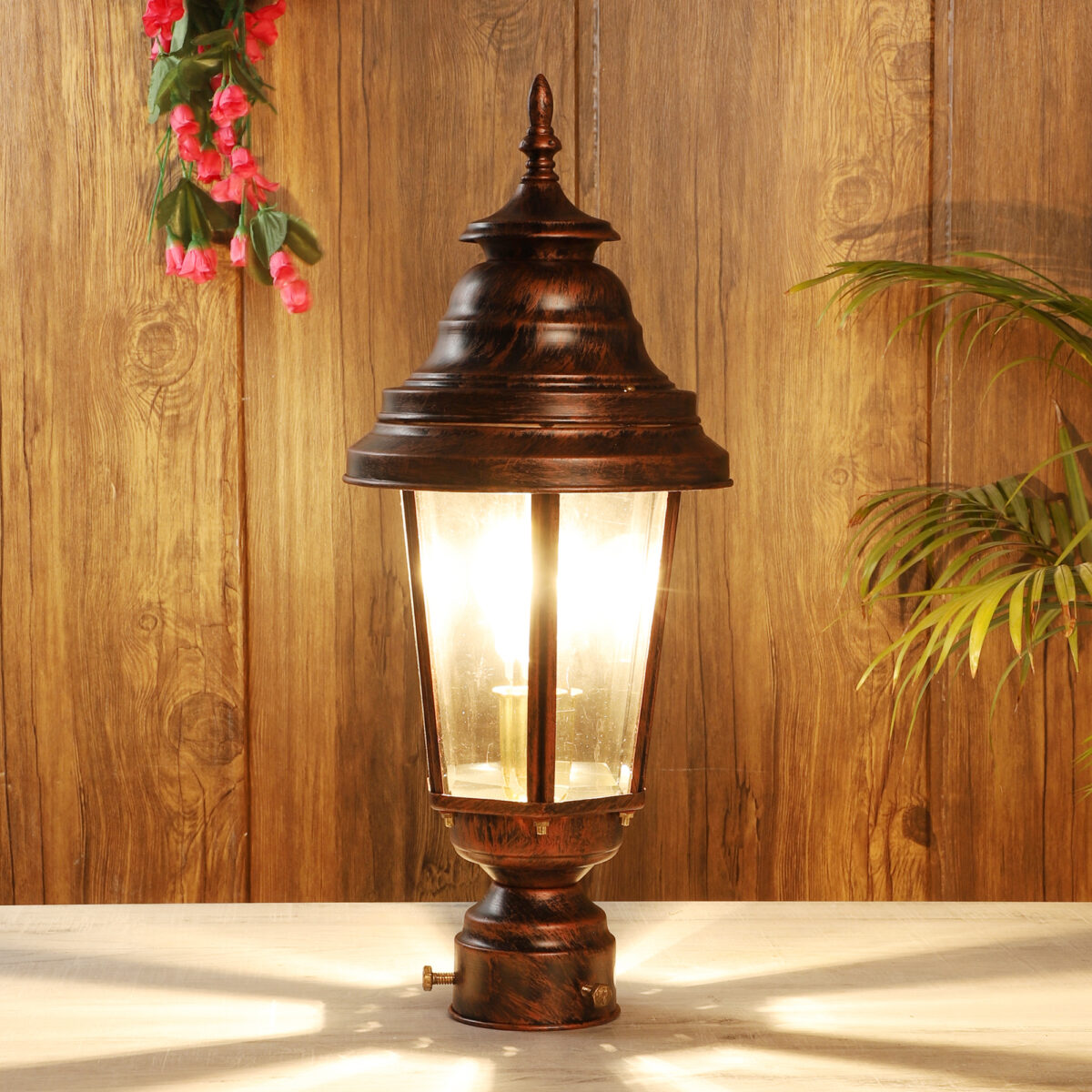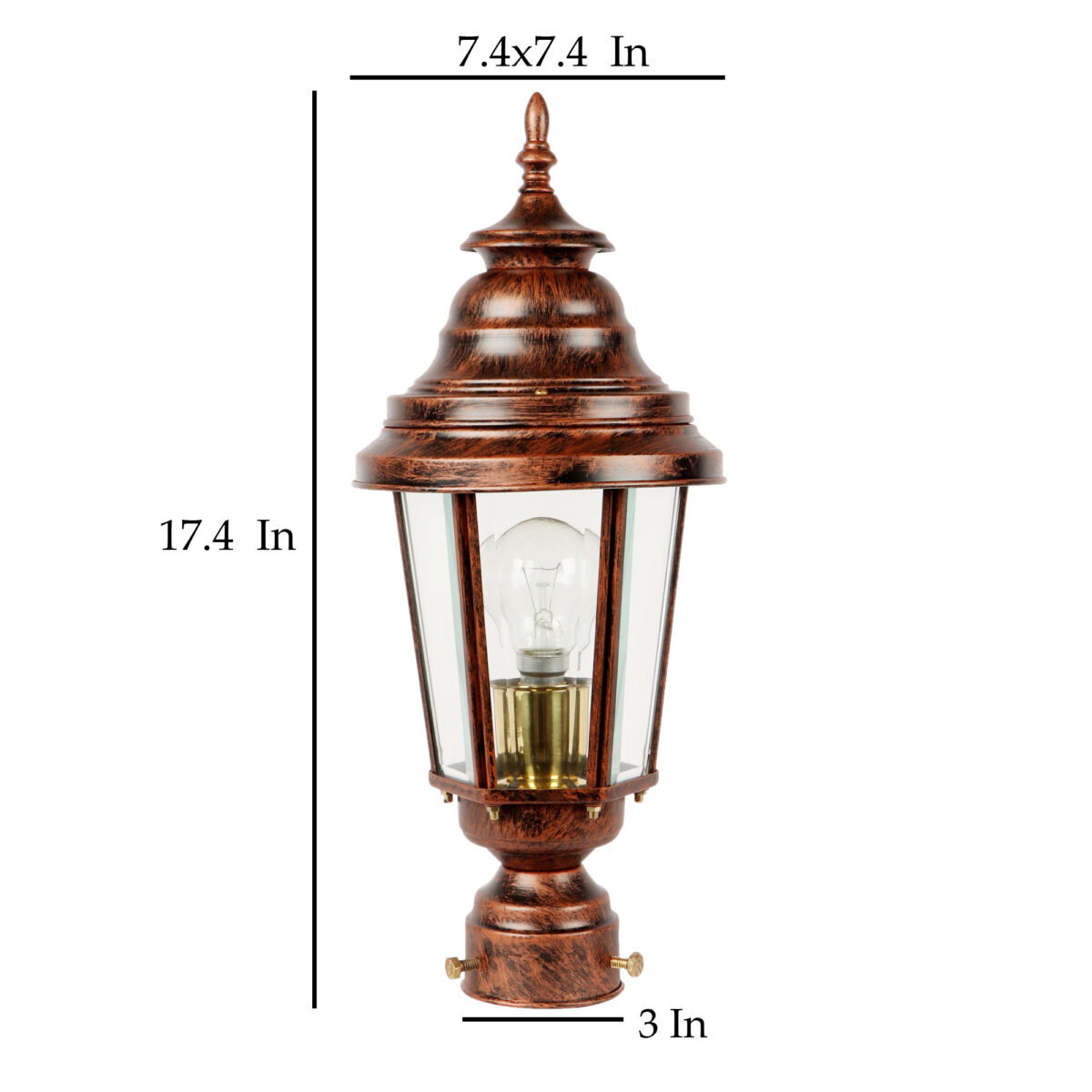 Traditional aluminium sheet, export quality gate pillar post light in attractive copper finish. It is maintenance free, comes with an B22 holder, only the change of lamp is required, which is available locally everywhere You can of course swap out the bulb for one that is dimmable, has a higher light output or a different color temperature. IP 54 rated, providing protection from sprayed water in any direction and making this light perfect for using outdoors. Application areas include building entrance, on top of terrace walls, terrace gardens, boundary walls, open parking, stilt parking. Available in two sizes with code of bigger size as GL4762.