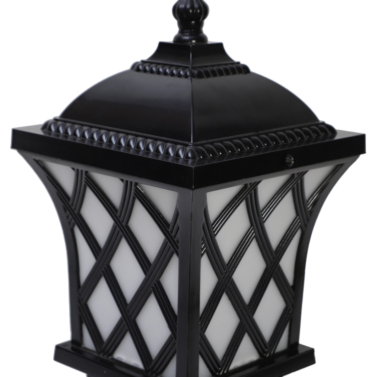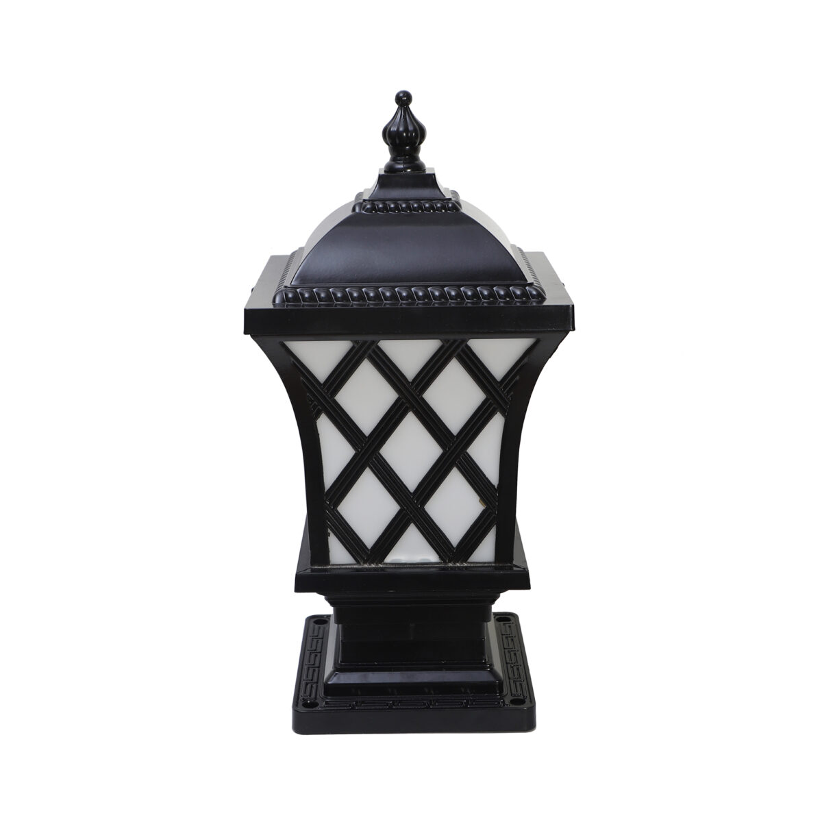 Traditional ,designer, light, aluminium die cast, gate pillar post light in black finish. It is maintenance free, comes with an E27 holder, only the change of lamp is required, which is available locally everywhere You can of course swap out the bulb for one that is dimmable, has a higher light output or a different color temperature. High quality acrylic is used to withstand tough weather conditions. IP54 rated, providing protection from sprayed water in any direction and making this light perfect for use outdoors. Application areas include building entrance, on top of terrace walls, terrace gardens, boundary walls, open parking, stilt parking. Also available in antique gold colour with code GL4821. LAMP NOT INCLUDED.