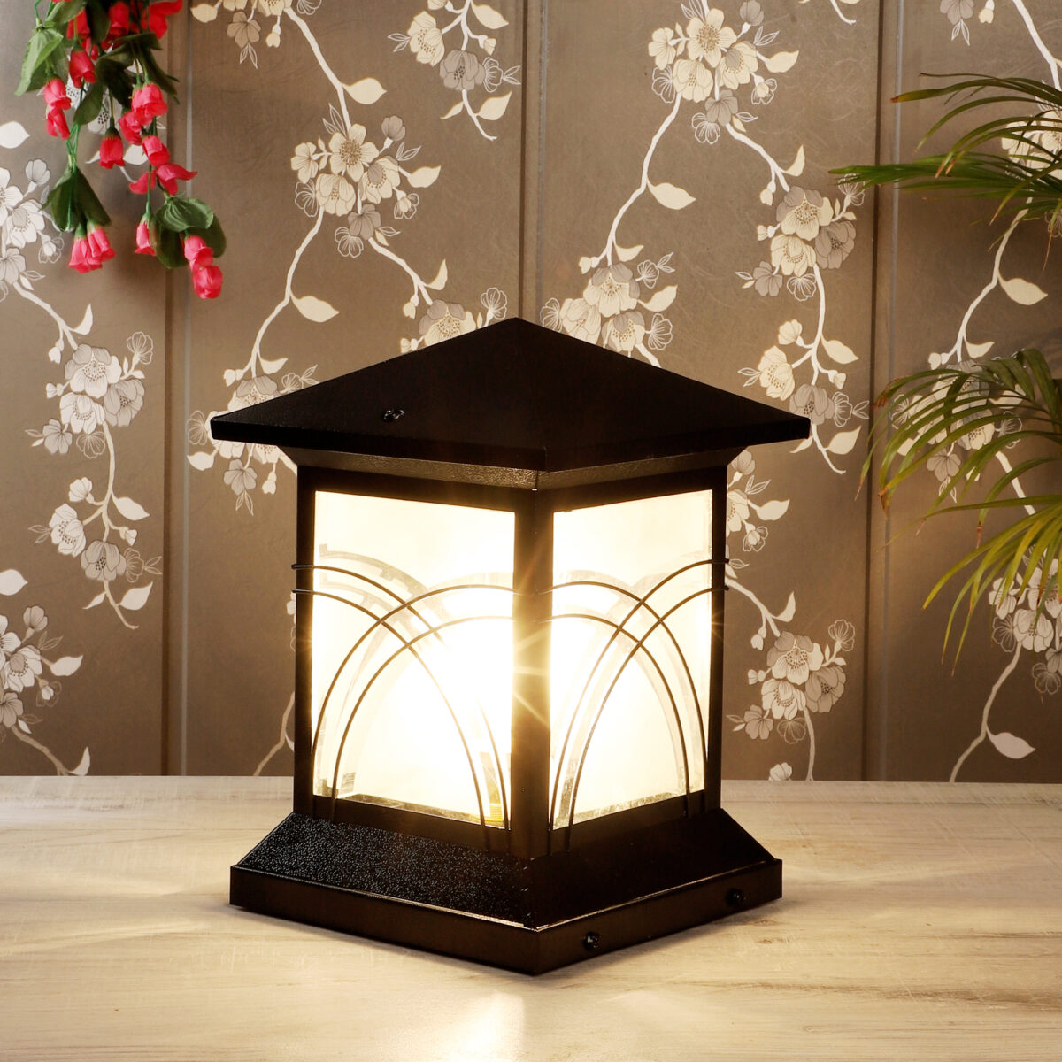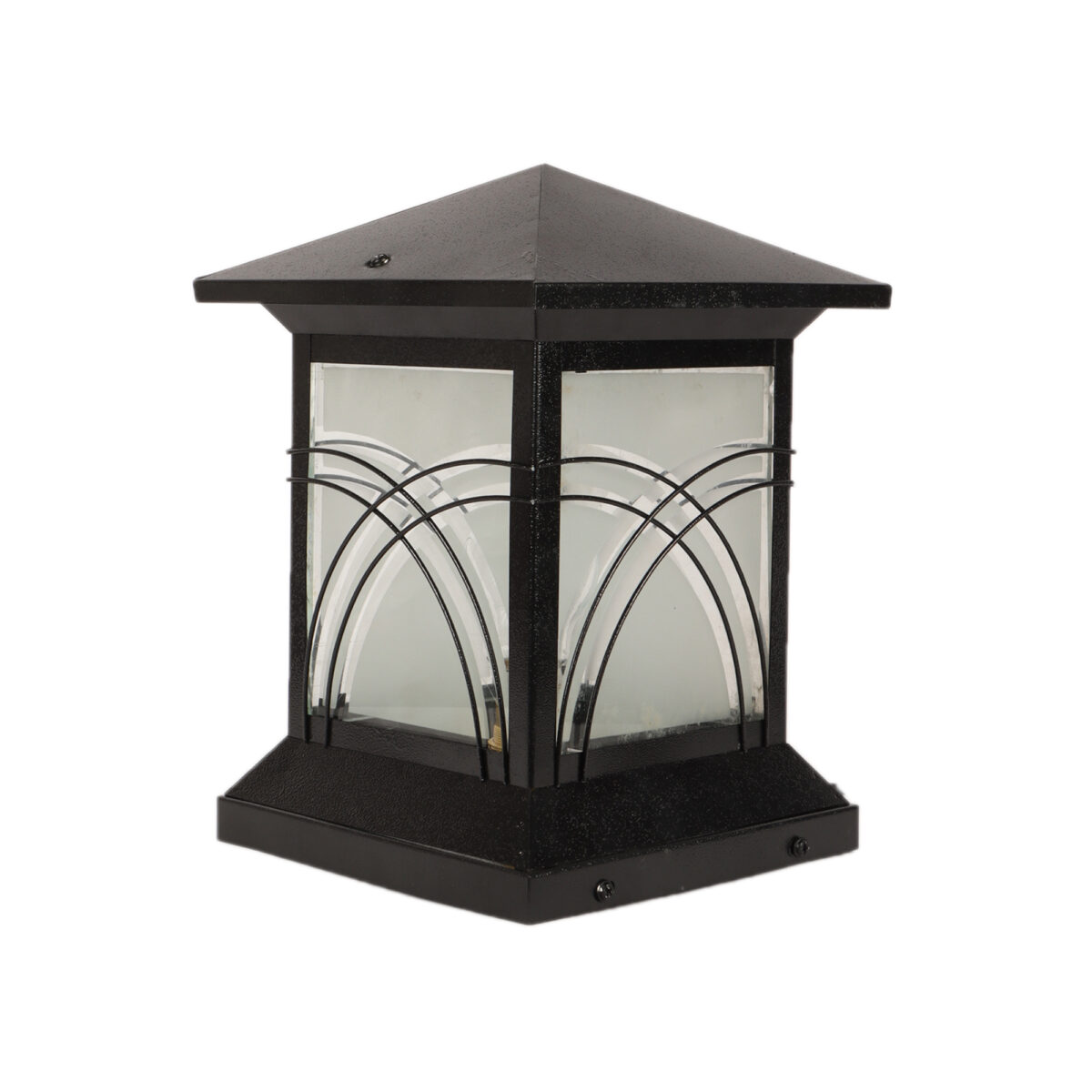 Traditional, mild steel economic gate pillar post light in black finish. It is maintenance free, comes with an B22 holder, only the change of lamp is required, which is available locally everywhere You can of course swap out the bulb for one that is dimmable, has a higher light output or a different color temperature. IP 54 rated, providing protection from sprayed water in any direction and making this light perfect for use outdoors. Application areas include building entrance, on top of terrace walls, terrace gardens, boundary walls, open parking, stilt parking. Available in two sizes. Big size gate light code – GL4804-S.