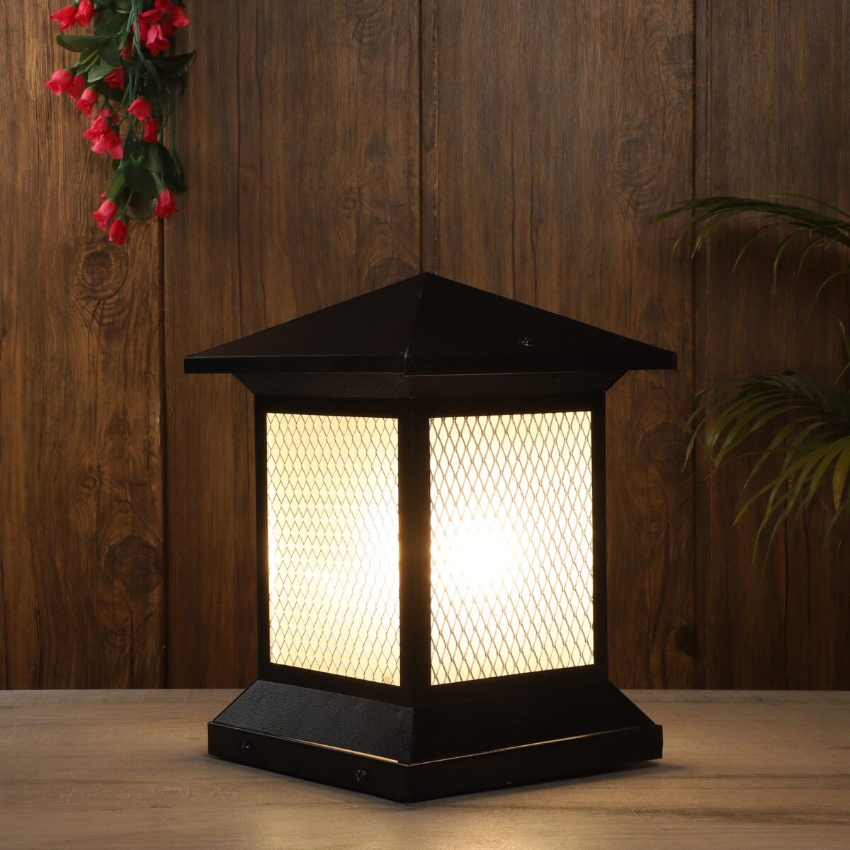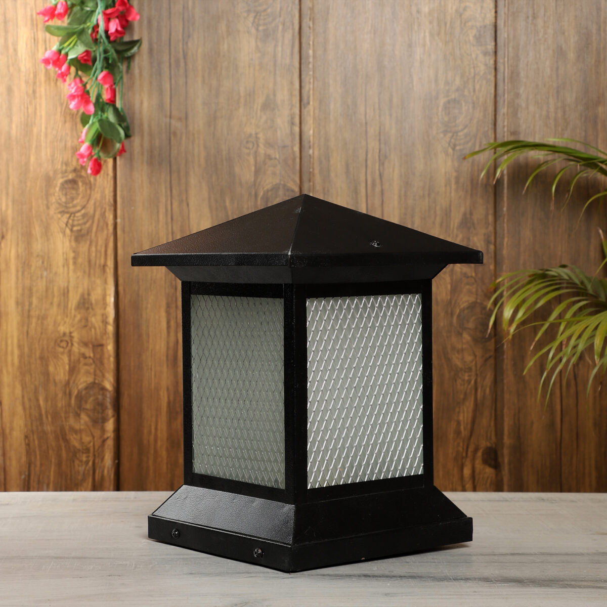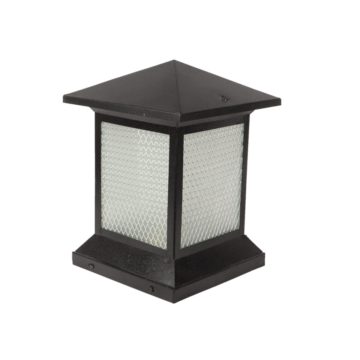 Traditional, mild steel economic gate pillar post light in black finish. It is maintenance free, comes with an B22 holder, only the change of lamp is required, which is available locally everywhere You can of course swap out the bulb for one that is dimmable, has a higher light output or a different color temperature. IP 54 rated, providing protection from sprayed water in any direction and making this light perfect for use outdoors. Application areas include building entrance, on top of terrace walls, terrace gardens, boundary walls, open parking, stilt parking.