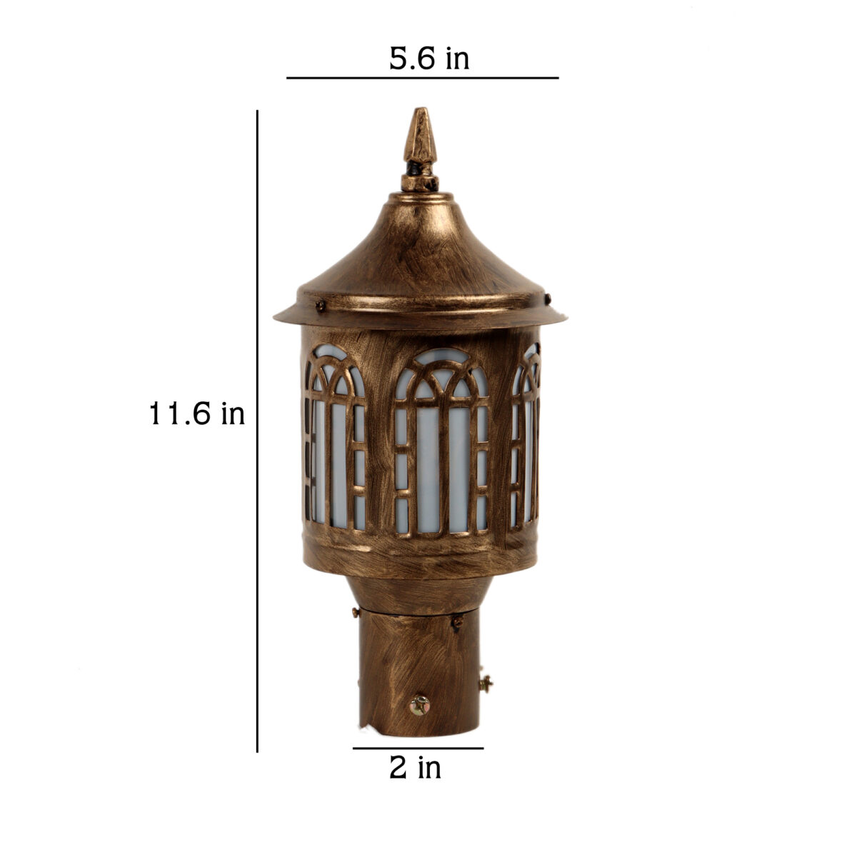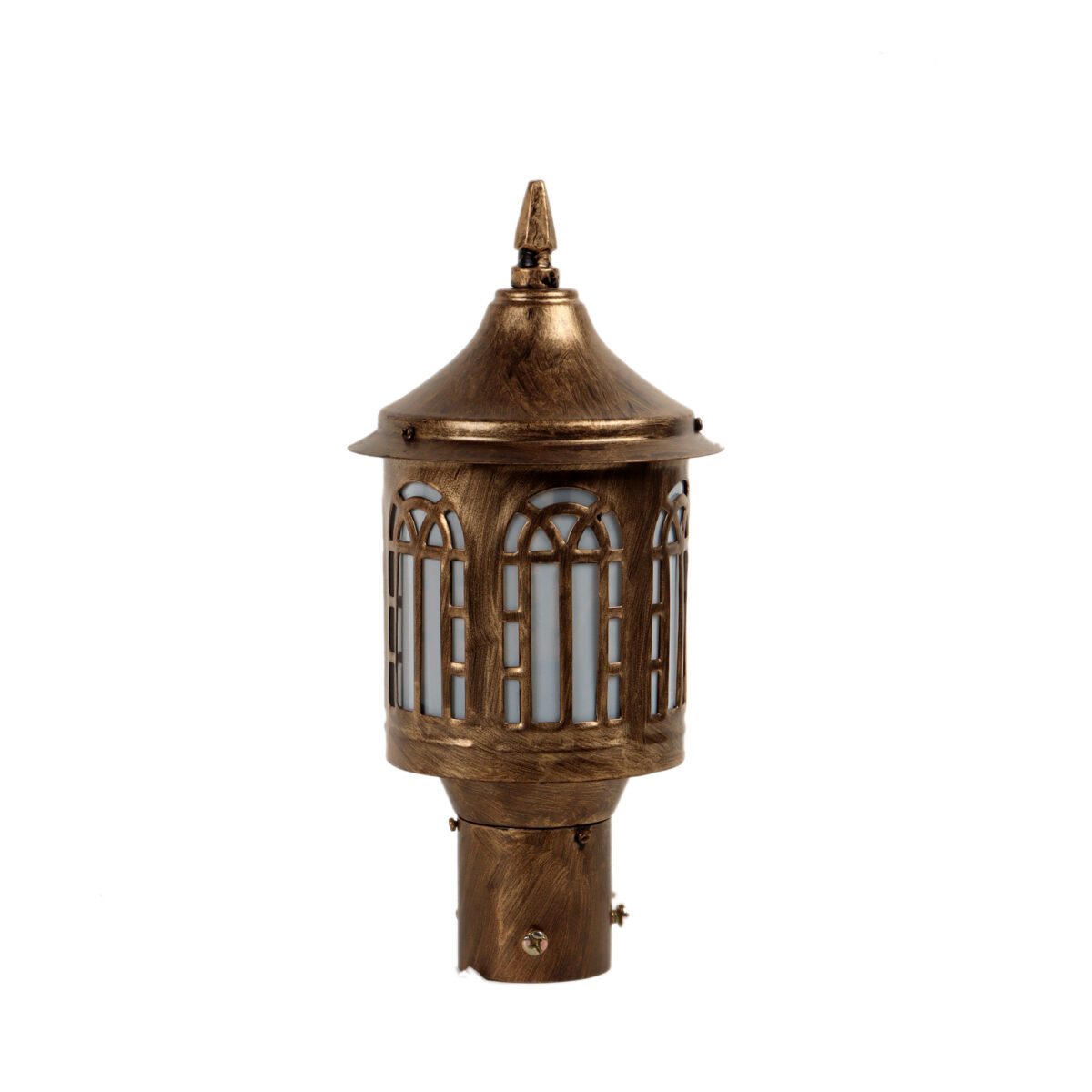 Traditional, mild steel economic gate pillar post light in antique gold finish. It is maintenance free, comes with an B22 holder, only the change of lamp is required, which is available locally everywhere. You can of course swap out the bulb for one that is dimmable, has a higher light output or a different color temperature. IP 54 rated, providing protection from sprayed water in any direction and making this light perfect for use outdoors. Application areas include building entrance, on top of terrace walls, terrace gardens, boundary walls, open parking, stilt parking. Also available in black and green finish.