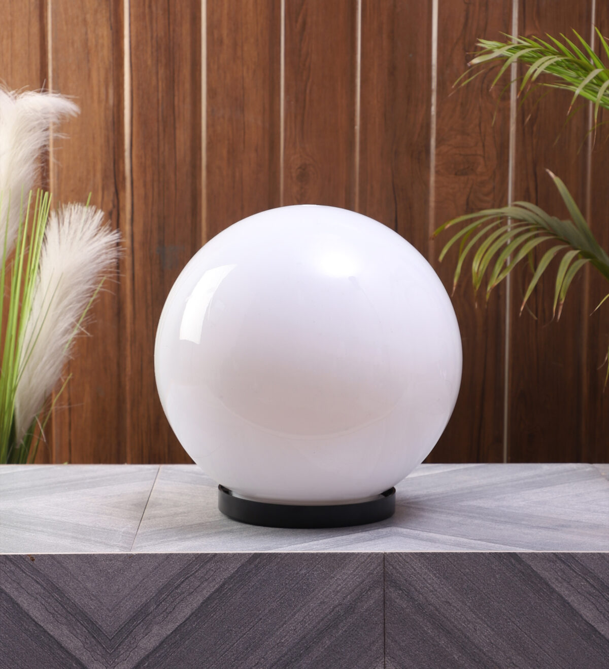 It is a ten inch high quality polycarbonate doom with a pvc base having long life , capable of withstanding tough weather conditions. It is maintenance free, comes with an B22 holder, only the change of lamp is required, which is available locally everywhere You can of course swap out the bulb for one that is dimmable, has a higher light output or a different color temperature. IP54 rated, providing protection from sprayed water in any direction and making this light perfect for use outdoors. Application areas include building entrance, on top of terrace walls, terrace gardens, boundary walls, open parking, stilt parking. Also available in various sizes with codes GL4825-S, GL4825-M, GL4825-XL. Can be installed on a two inch pipe for using it as a bollard or pillar light.