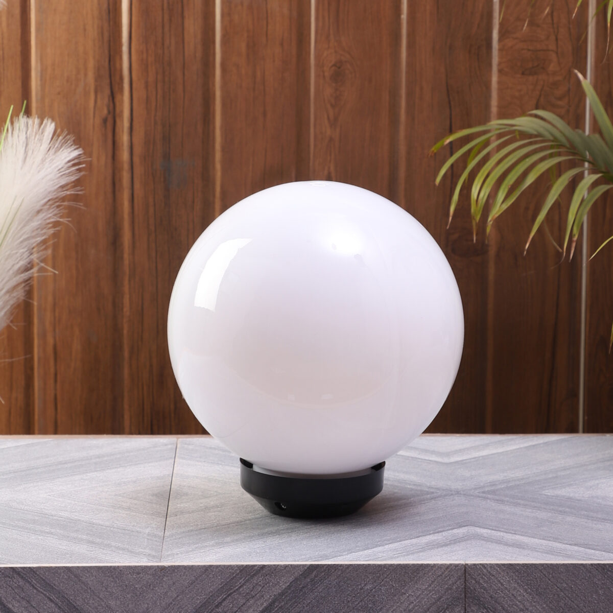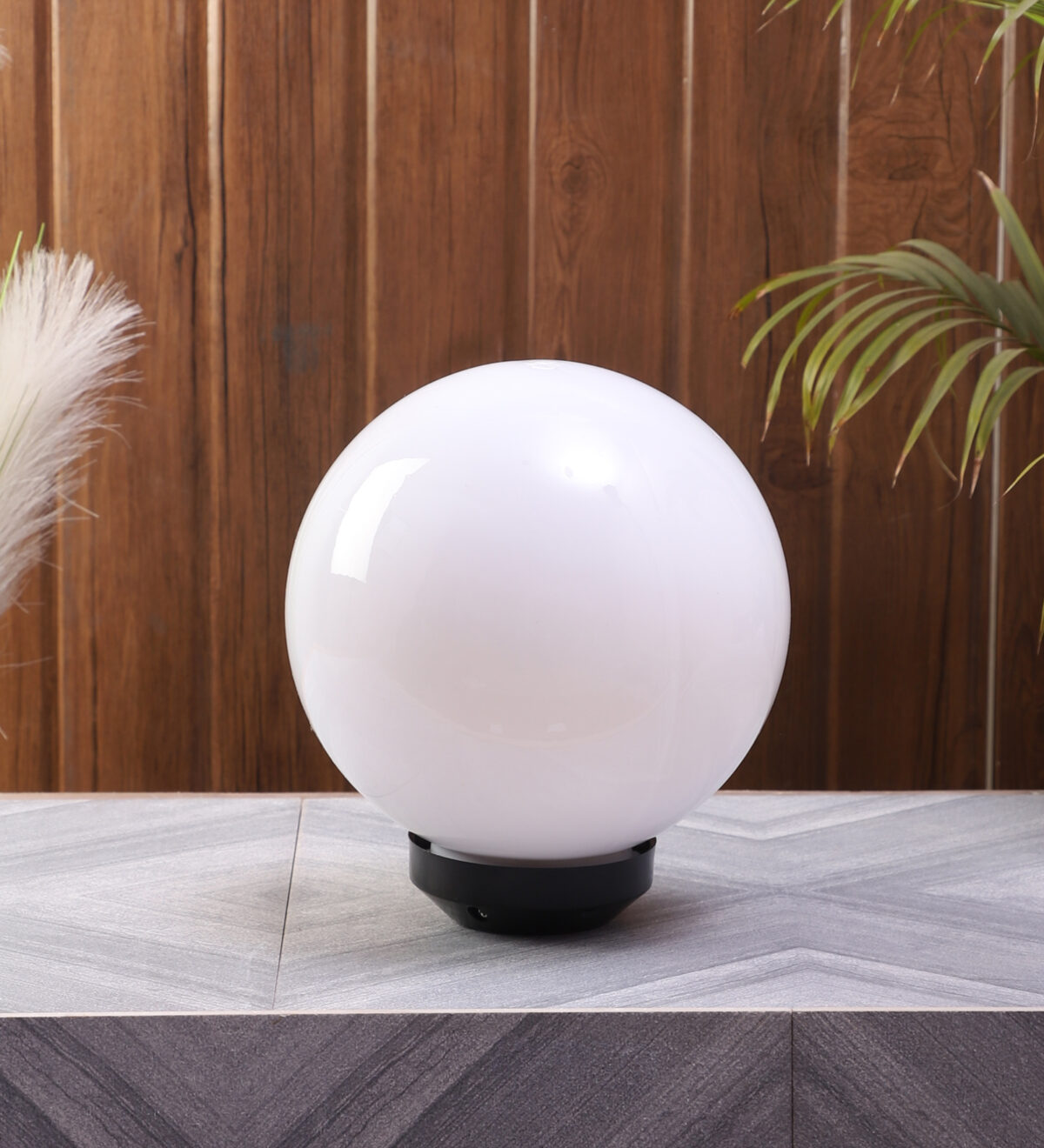 It is an eight inch high quality polycarbonate doom with a pvc base having long life , capable of withstanding tough weather conditions. It is maintenance free, comes with an B22 holder, only the change of lamp is required, which is available locally everywhere You can of course swap out the bulb for one that is dimmable, has a higher light output or a different color temperature. IP54 rated, providing protection from sprayed water in any direction and making this light perfect for use outdoors. Application areas include building entrance, on top of terrace walls, terrace gardens, boundary walls, open parking, stilt parking. Also available in various sizes with codes GL4825-S, GL4825-L, GL4825-XL. Can be installed on a two inch pipe for using it as a bollard or pillar light.