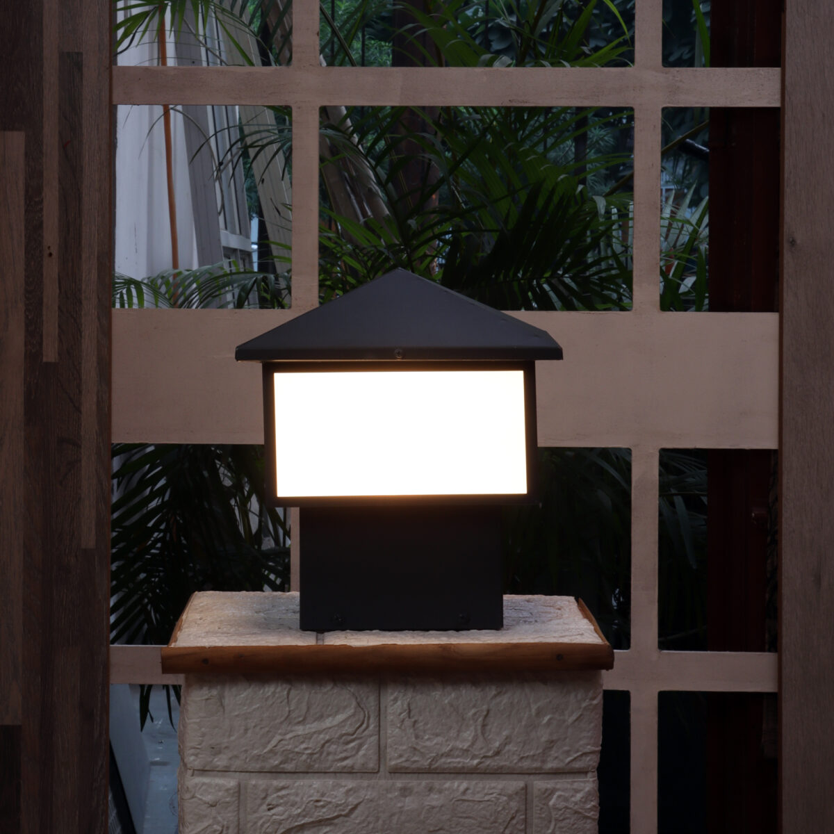 Modern mild steel, gate pillar post light in grey finish. It is maintenance free, comes with an E27 holder, only the change of lamp is required, which is available locally everywhere You can of course swap out the bulb for one that is dimmable, has a higher light output or a different color temperature. High quality acrylic is used to withstand tough weather conditions. IP54 rated, providing protection from sprayed water in any direction and making this light perfect for use outdoors. Application areas include building entrance, on top of terrace walls, terrace gardens, boundary walls, open parking, stilt parking. LAMP NOT INCLUDED.