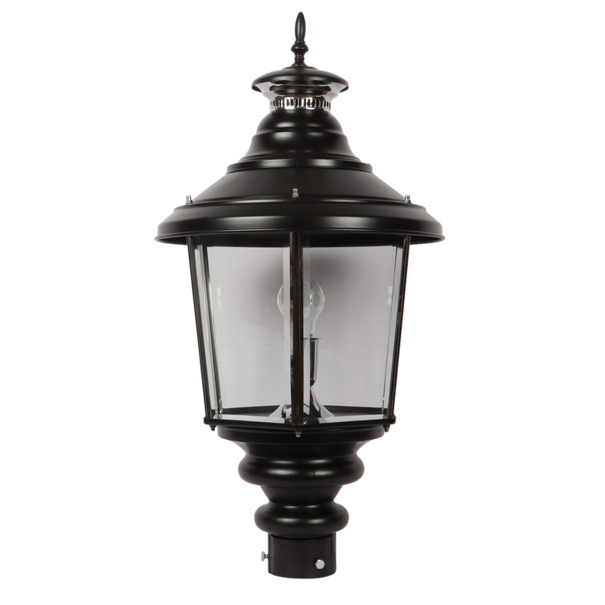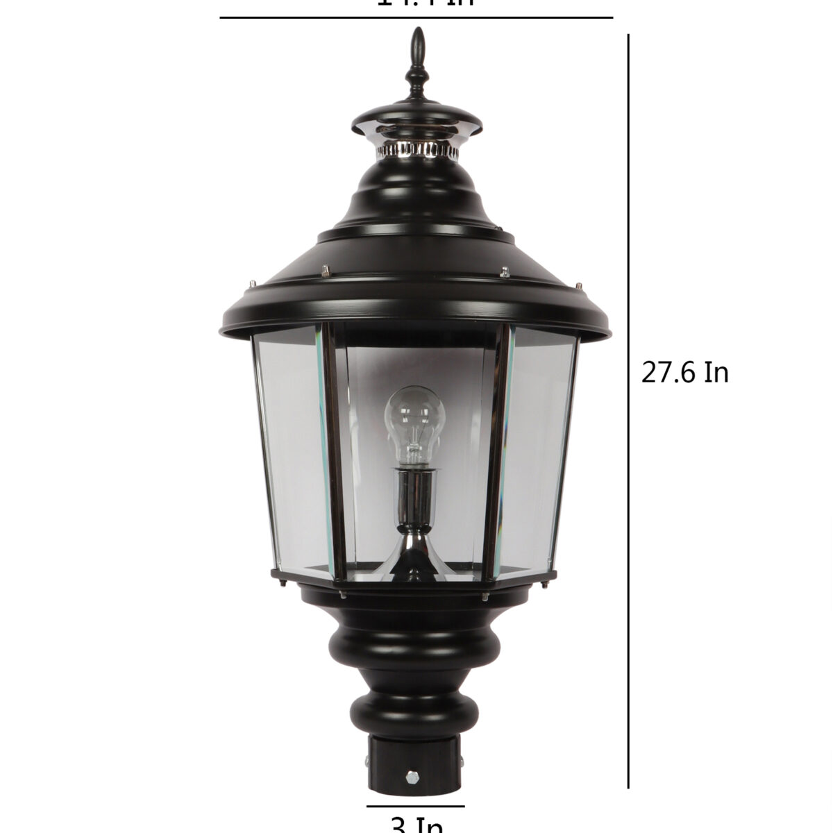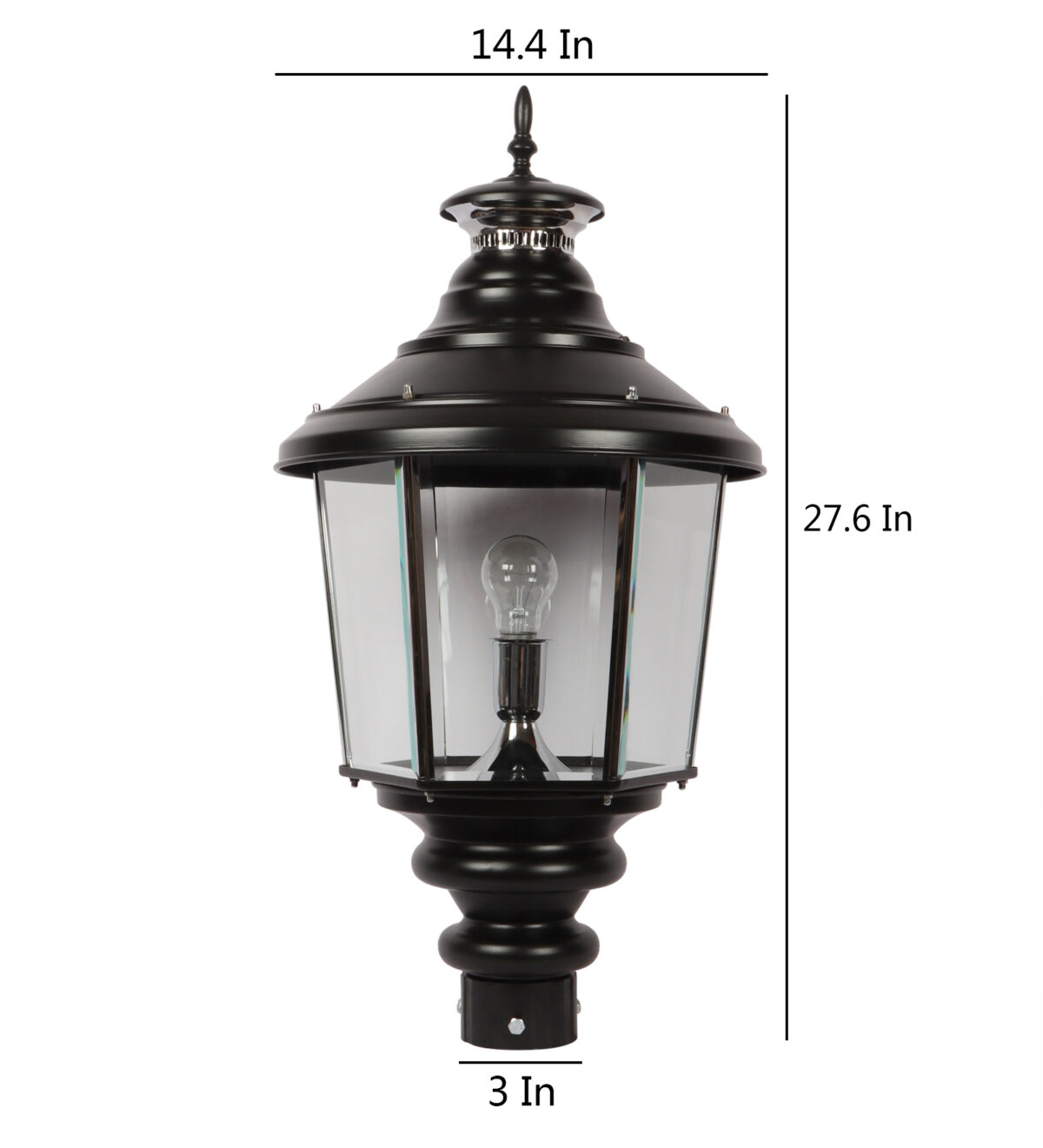 Traditional aluminium sheet, export quality gate pillar post light in black finish. It is maintenance free, comes with an B22 holder, only the change of lamp is required, which is available locally everywhere You can of course swap out the bulb for one that is dimmable, has a higher light output or a different color temperature. IP 54 rated, providing protection from sprayed water in any direction and making this light perfect for use outdoors. Application areas include building entrance, on top of terrace walls, terrace gardens, boundary walls, open parking, stilt parking. Also available in small size with code GL4659, GL4763. Matchnig wall light code WL1831, WL2071. MAtching Hanging code – HL6059. Matching bollard code K1066. LAMP NOT INCLUDED.