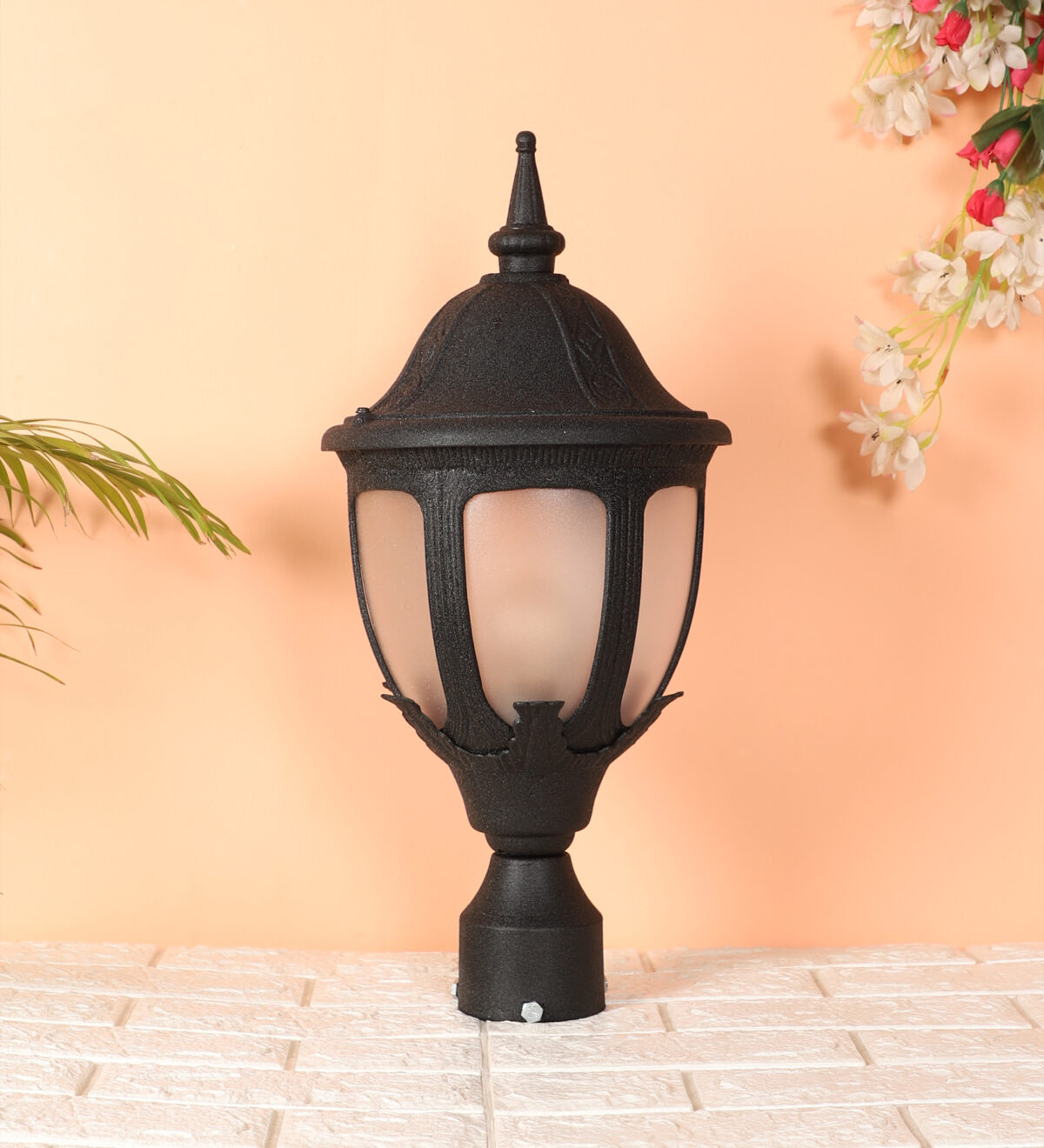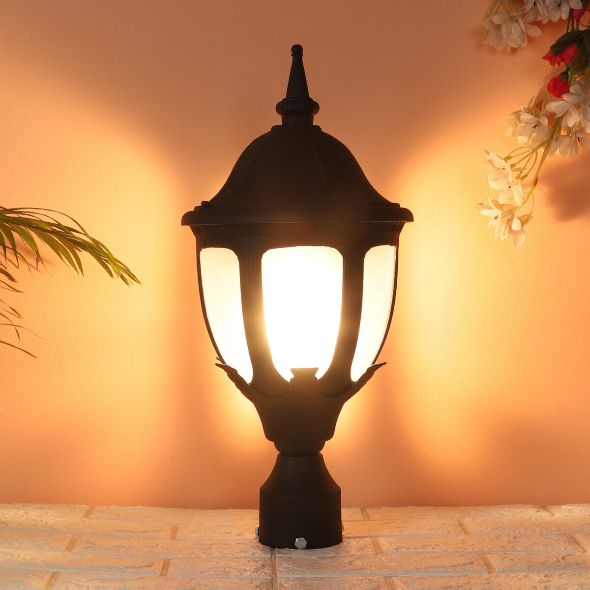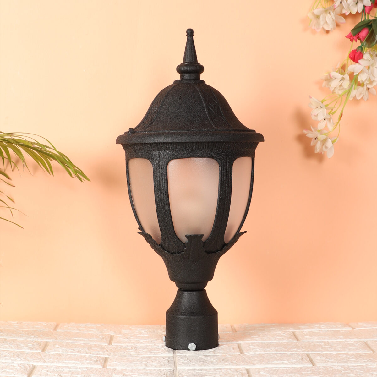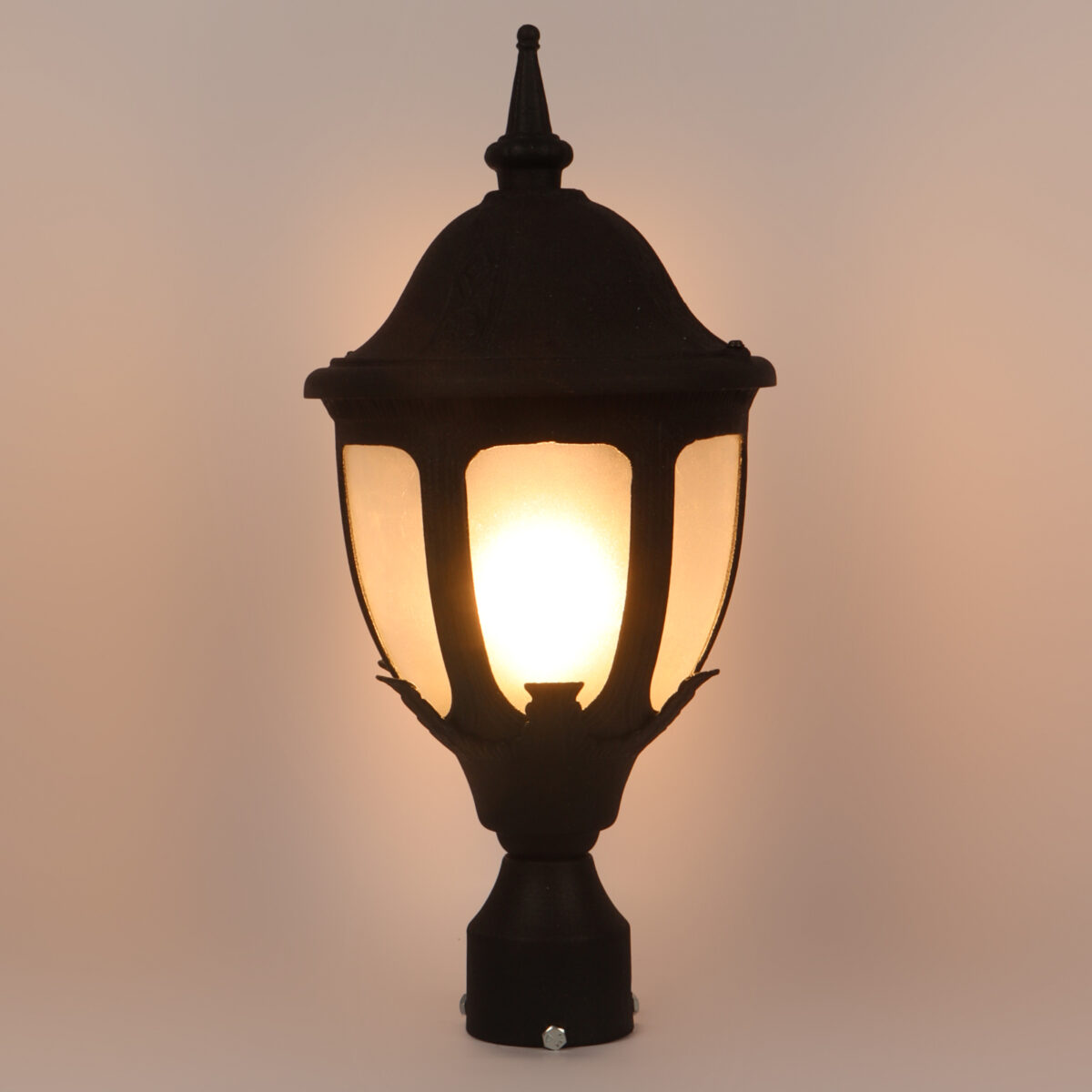 Traditional heavy duty aluminium die cast, premium one of top selling export quality gate pillar post light in black finish. It is maintenance free, comes with an B22 holder, only the change of lamp is required, which is available locally everywhere You can of course swap out the bulb for one that is dimmable, has a higher light output or a different color temperature. IP54 rated, providing protection from sprayed water in any direction and making this light perfect for use outdoors. Application areas include building entrance, on top of terrace walls, terrace gardens, boundary walls, open parking, stilt parking. Matching wall light code – WL1836, Matching pendant code – HL6062. Matching bollard code K1082. LAMP NOT INCLUDED.