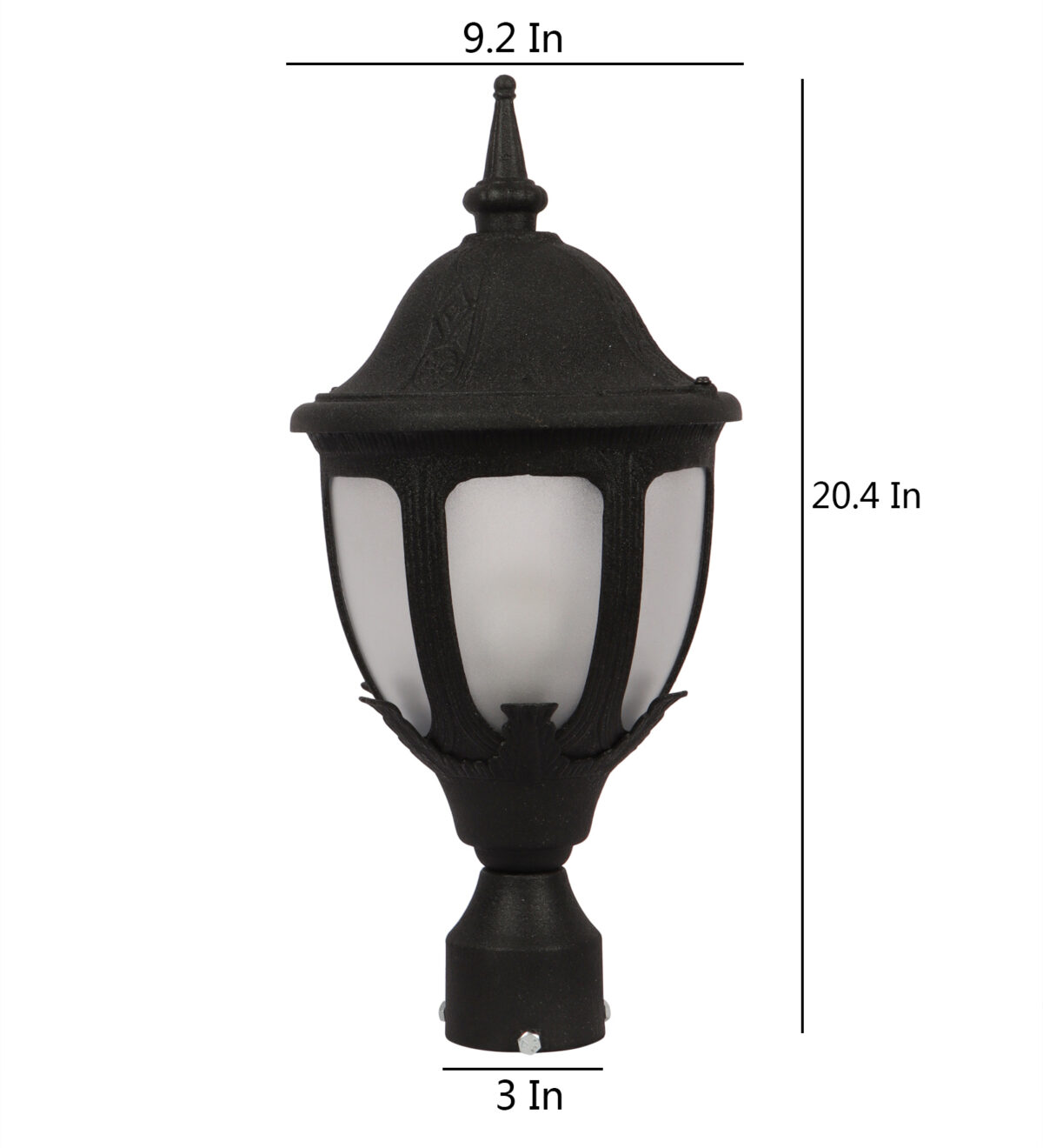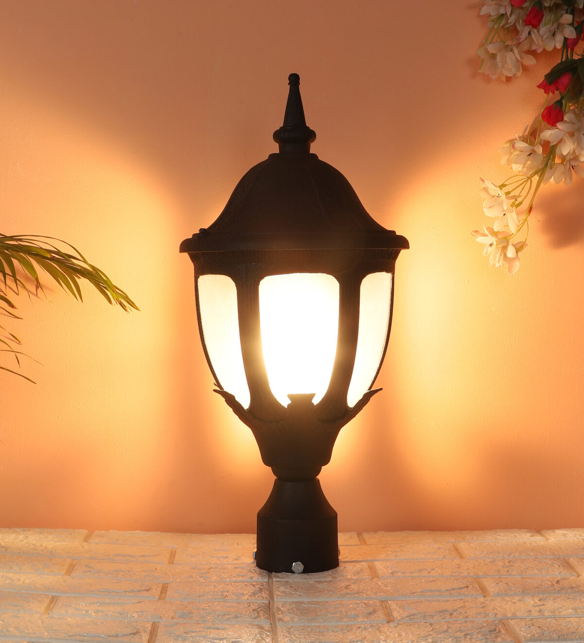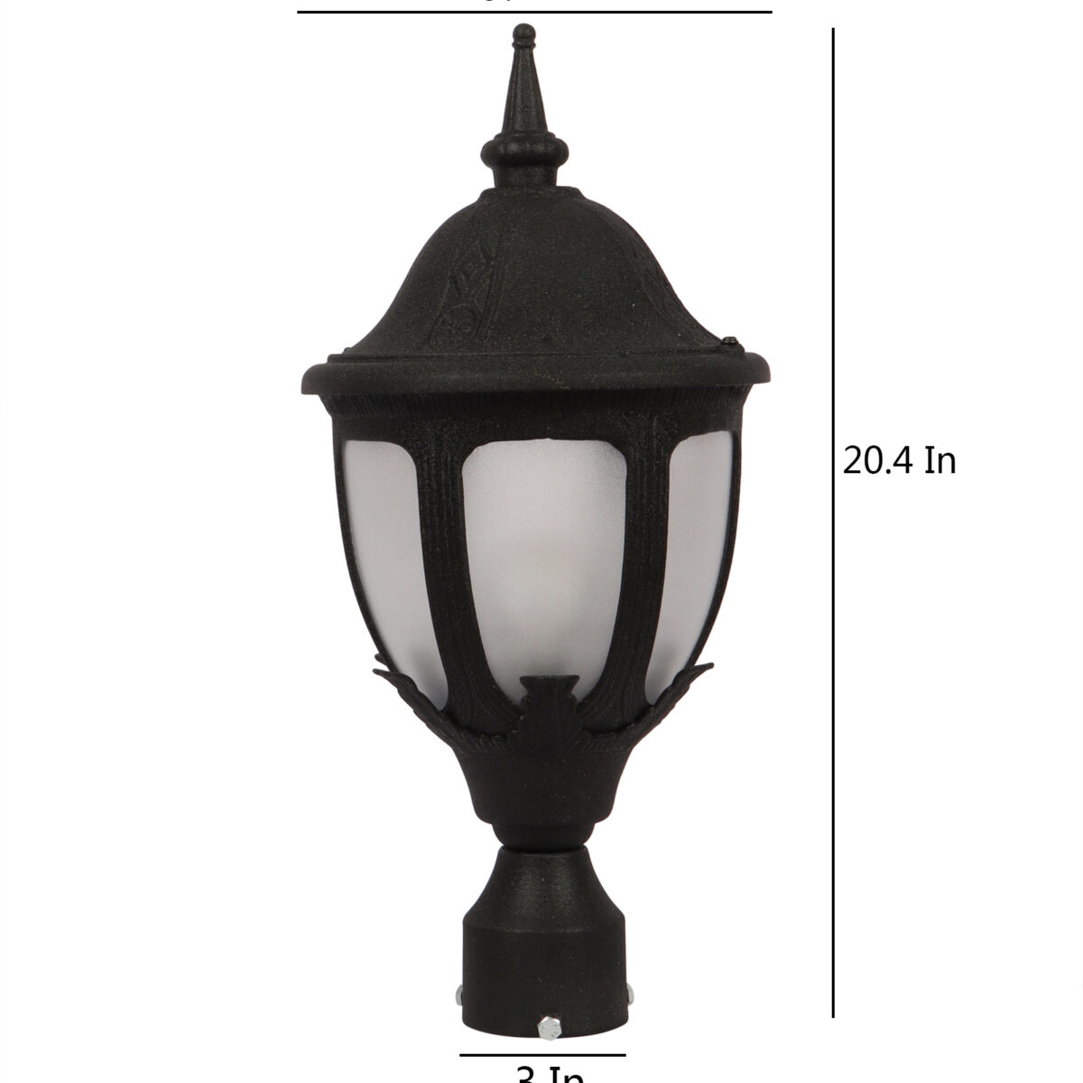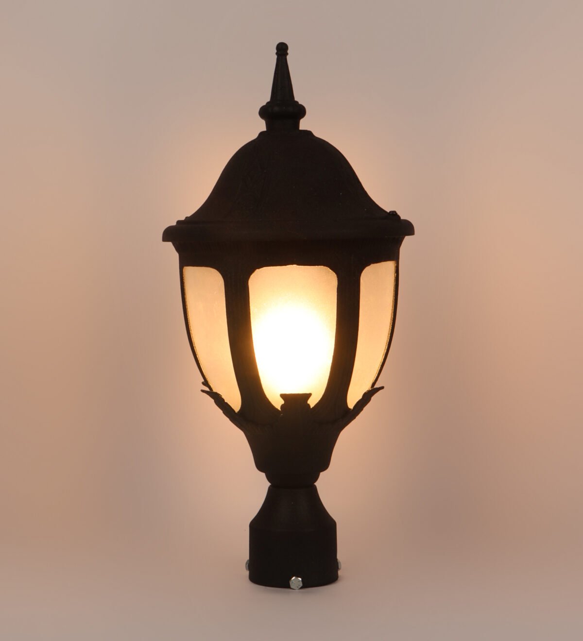 Traditional heavy duty aluminium die cast, premium one of top selling export quality gate pillar post light in black finish. It is maintenance free, comes with an B22 holder, only the change of lamp is required, which is available locally everywhere You can of course swap out the bulb for one that is dimmable, has a higher light output or a different color temperature. IP54 rated, providing protection from sprayed water in any direction and making this light perfect for use outdoors. Application areas include building entrance, on top of terrace walls, terrace gardens, boundary walls, open parking, stilt parking. Matching wall light code – WL1836, Matching pendant code – HL6062. Matching bollard code K1082. LAMP NOT INCLUDED.