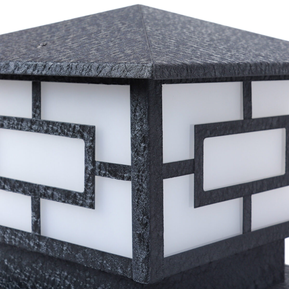 Modern mild steel, gate pillar post light in black finish. It is maintenance free, comes with an B22 holder, only the change of lamp is required, which is available locally everywhere You can of course swap out the bulb for one that is dimmable, has a higher light output or a different color temperature. High quality acrylic is used to withstand tough weather conditions. IP54 rated, providing protection from sprayed water in any direction and making this light perfect for use outdoors. Application areas include building entrance, on top of terrace walls, terrace gardens, boundary walls, open parking, stilt parking. LAMP NOT INCLUDED.
