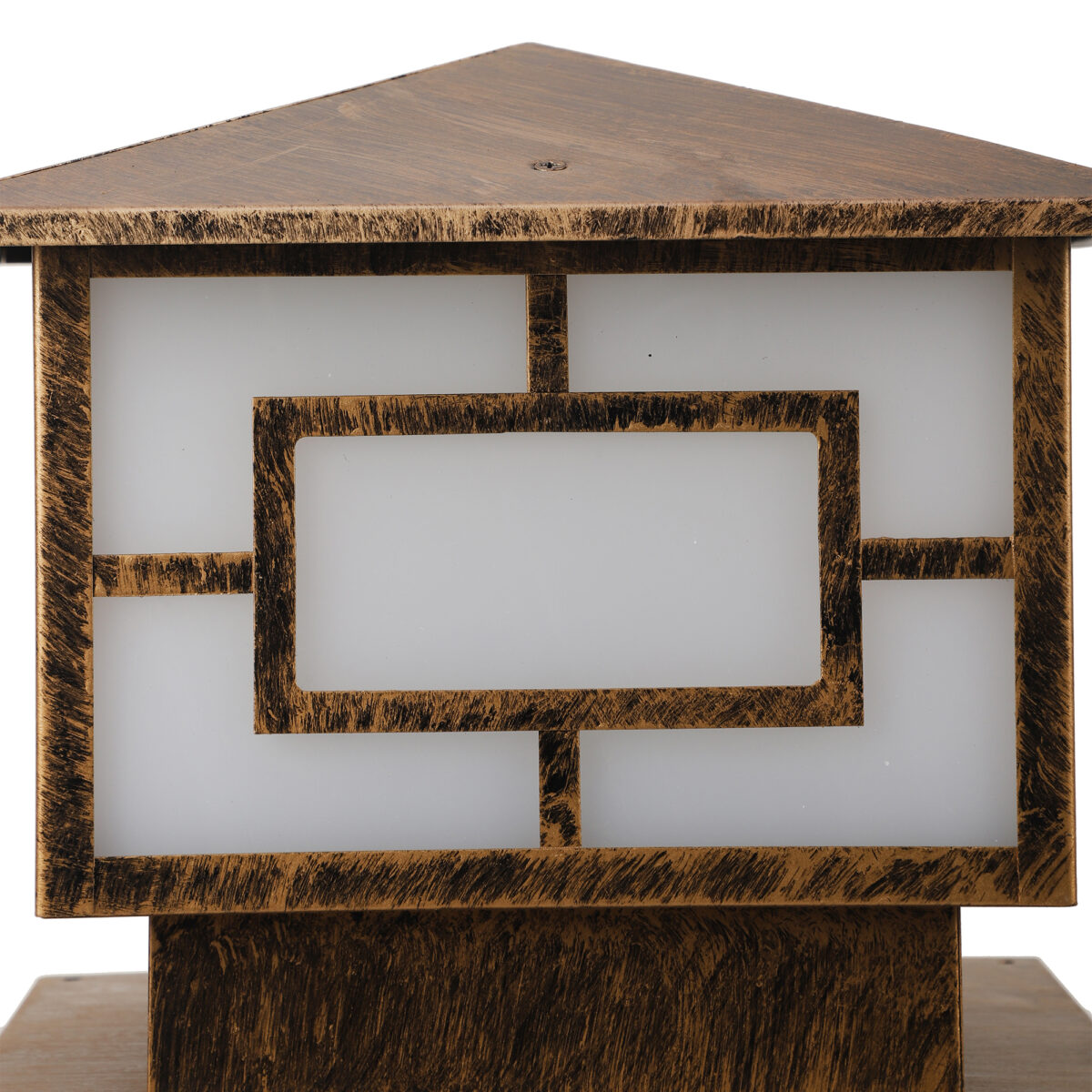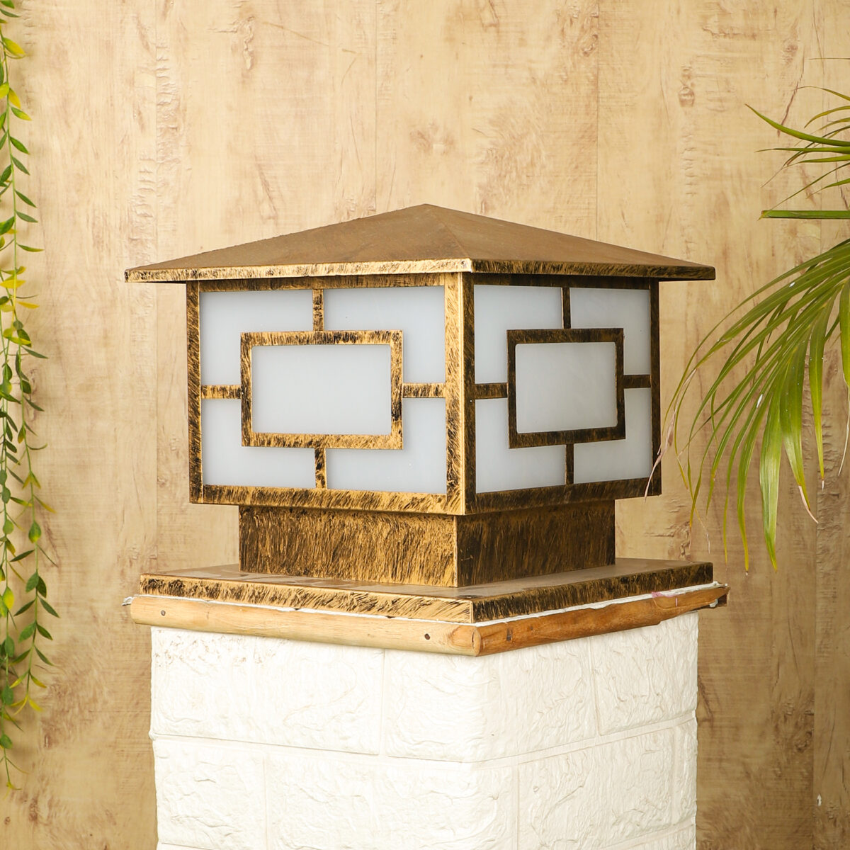Modern mild steel, gate pillar post light in antique gold finish. It is maintenance free, comes with an B22 holder, only the change of lamp is required, which is available locally everywhere You can of course swap out the bulb for one that is dimmable, has a higher light output or a different color temperature. High quality acrylic is used to withstand tough weather conditions. IP54 rated, providing protection from sprayed water in any direction and making this light perfect for use outdoors. Application areas include building entrance, on top of terrace walls, terrace gardens, boundary walls, open parking, stilt parking. LAMP NOT INCLUDED.