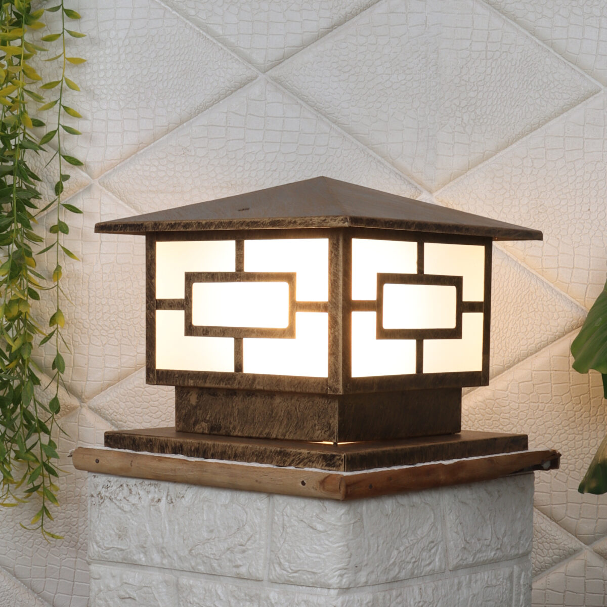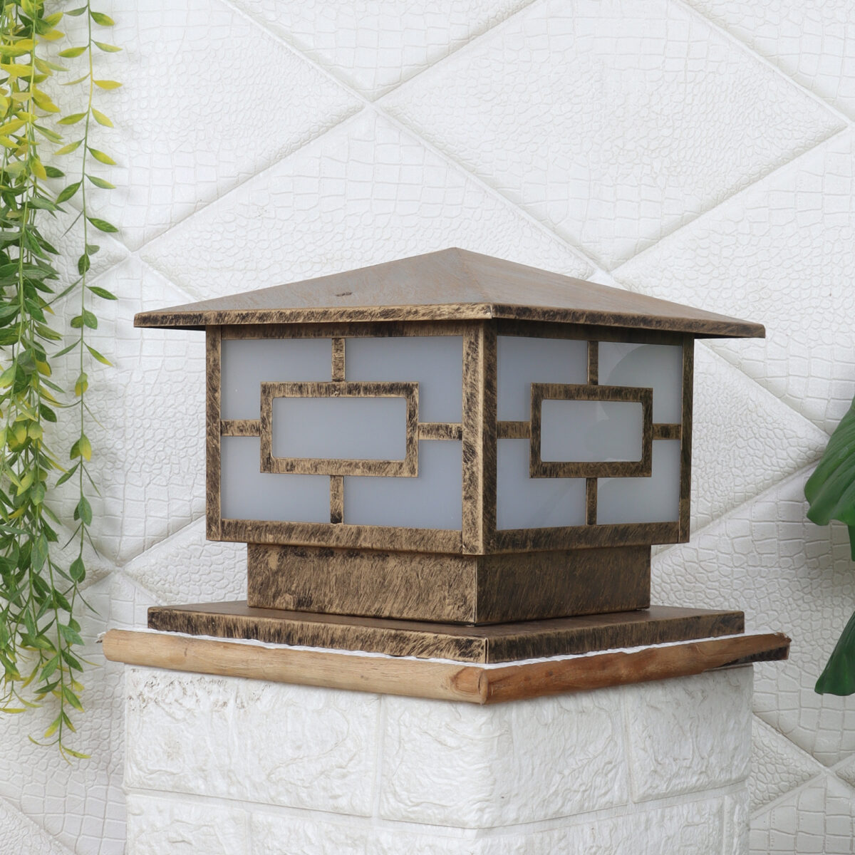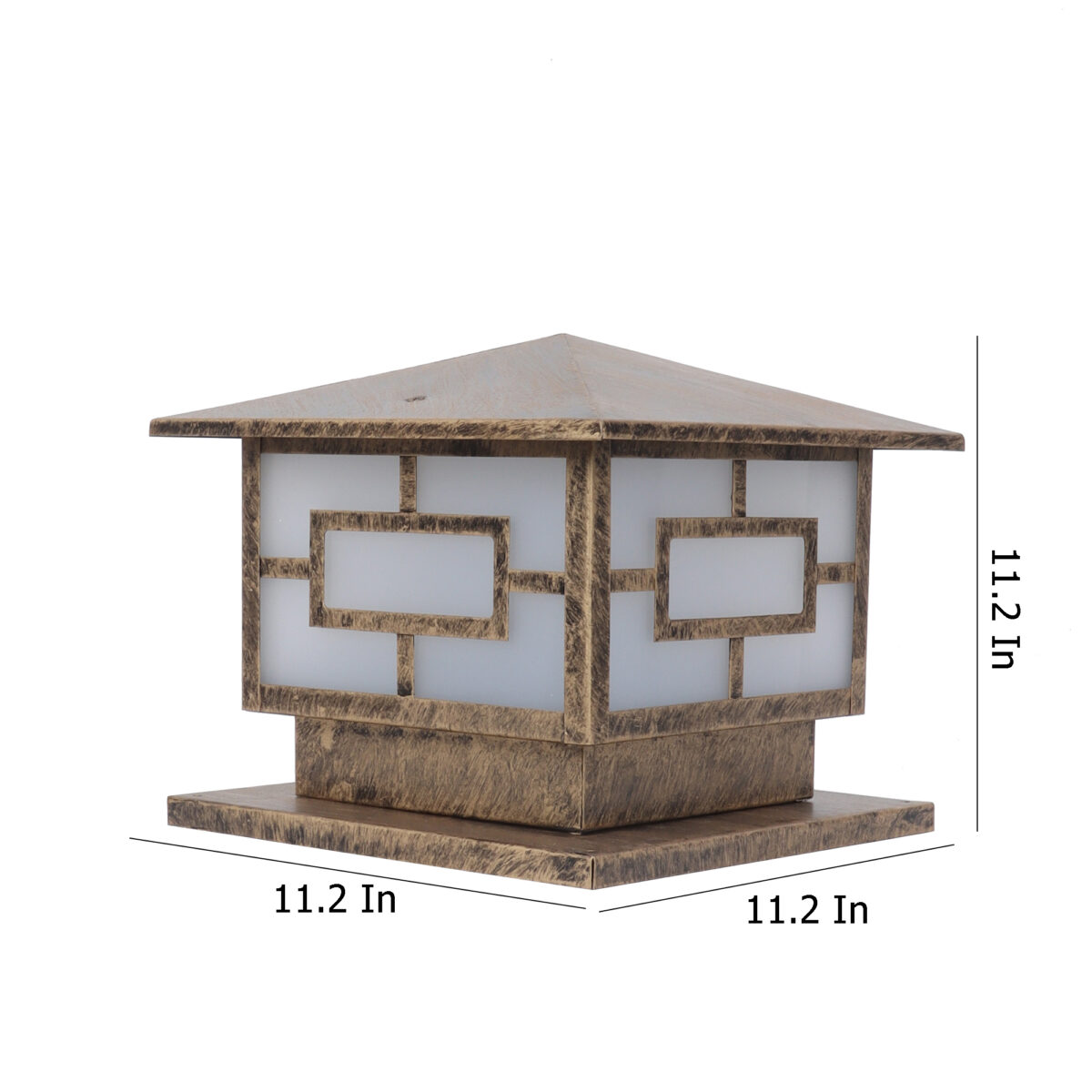 Modern mild steel, gate pillar post light in antique gold finish. It is maintenance free, comes with an B22 holder, only the change of lamp is required, which is available locally everywhere You can of course swap out the bulb for one that is dimmable, has a higher light output or a different color temperature. High quality acrylic is used to withstand tough weather conditions. IP54 rated, providing protection from sprayed water in any direction and making this light perfect for use outdoors. Application areas include building entrance, on top of terrace walls, terrace gardens, boundary walls, open parking, stilt parking. LAMP NOT INCLUDED.
