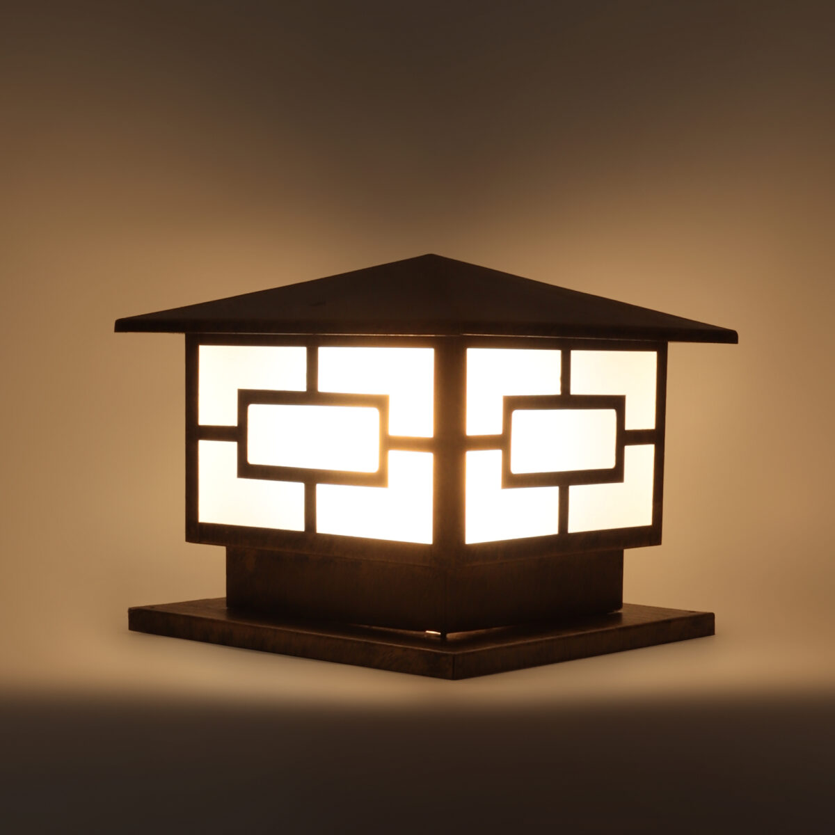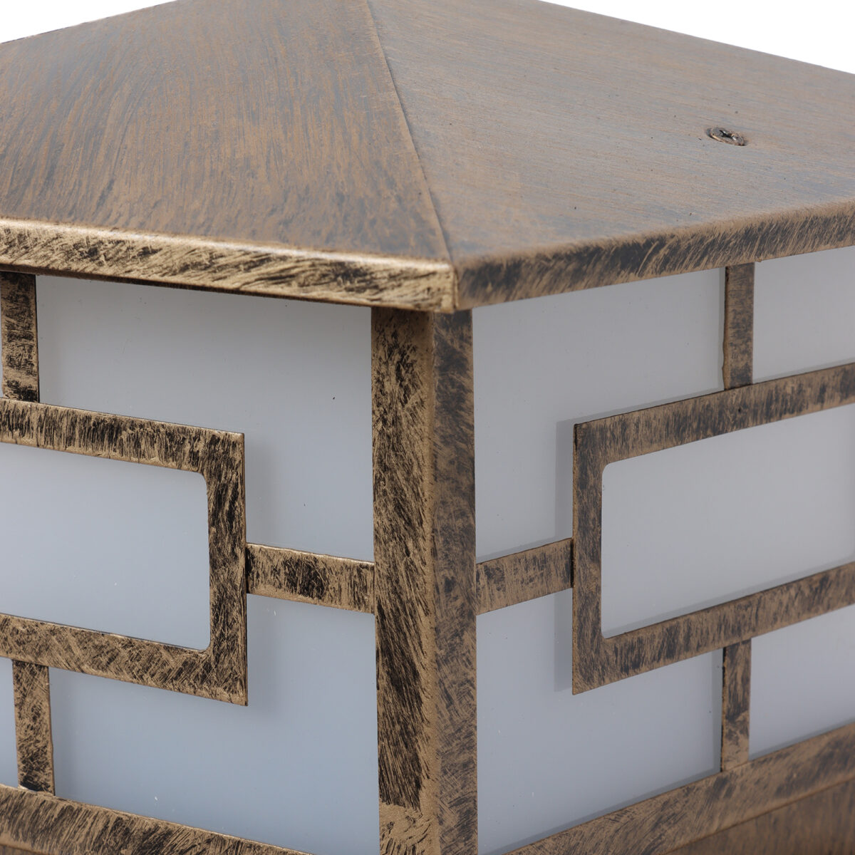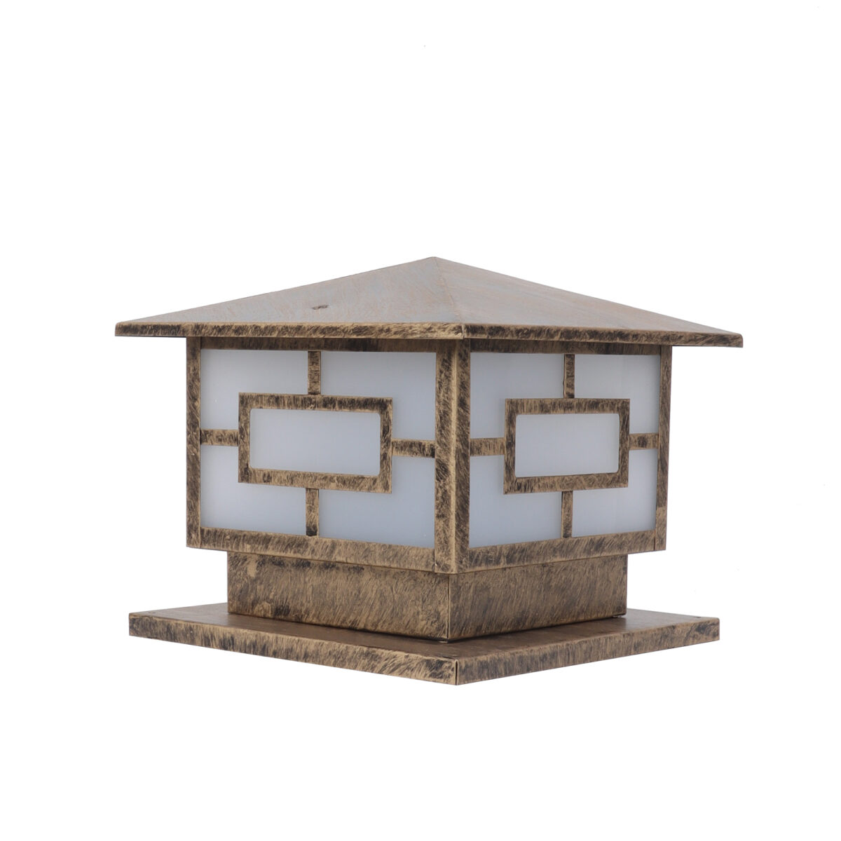 Modern mild steel, gate pillar post light in antique gold finish. It is maintenance free, comes with an B22 holder, only the change of lamp is required, which is available locally everywhere You can of course swap out the bulb for one that is dimmable, has a higher light output or a different color temperature. High quality acrylic is used to withstand tough weather conditions. IP54 rated, providing protection from sprayed water in any direction and making this light perfect for use outdoors. Application areas include building entrance, on top of terrace walls, terrace gardens, boundary walls, open parking, stilt parking. LAMP NOT INCLUDED.