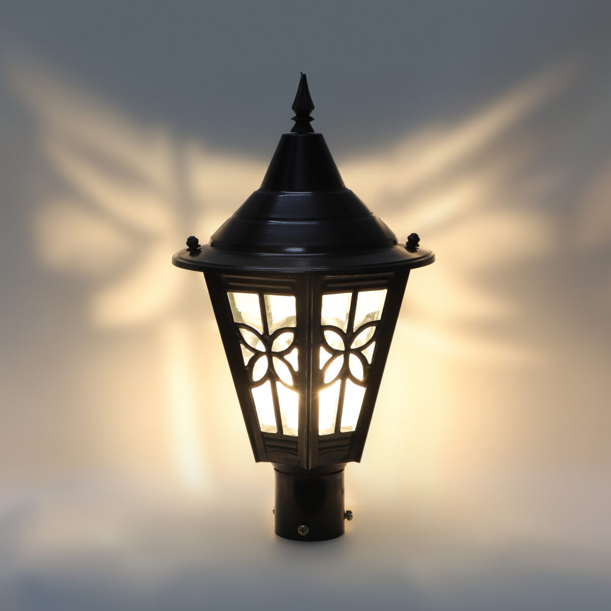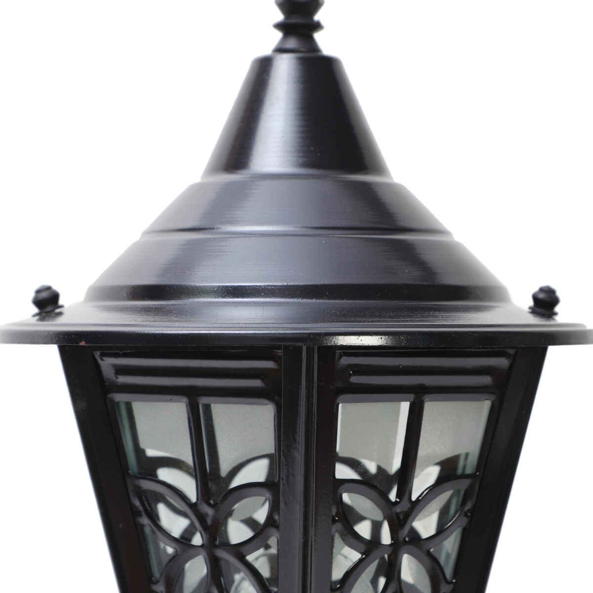Traditional, mild steel economic gate pillar post light in black finish with B22 lamp holder. LAMP NOT INCLUDED.