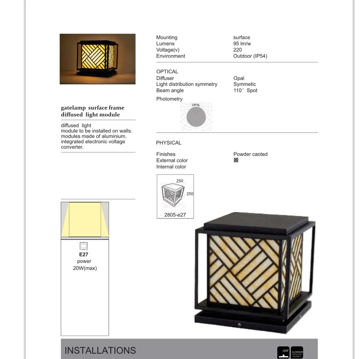 Modern aluminium steel outdoor gate light. LAMP NOT INCLUDED.