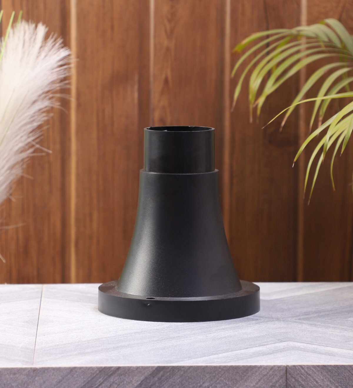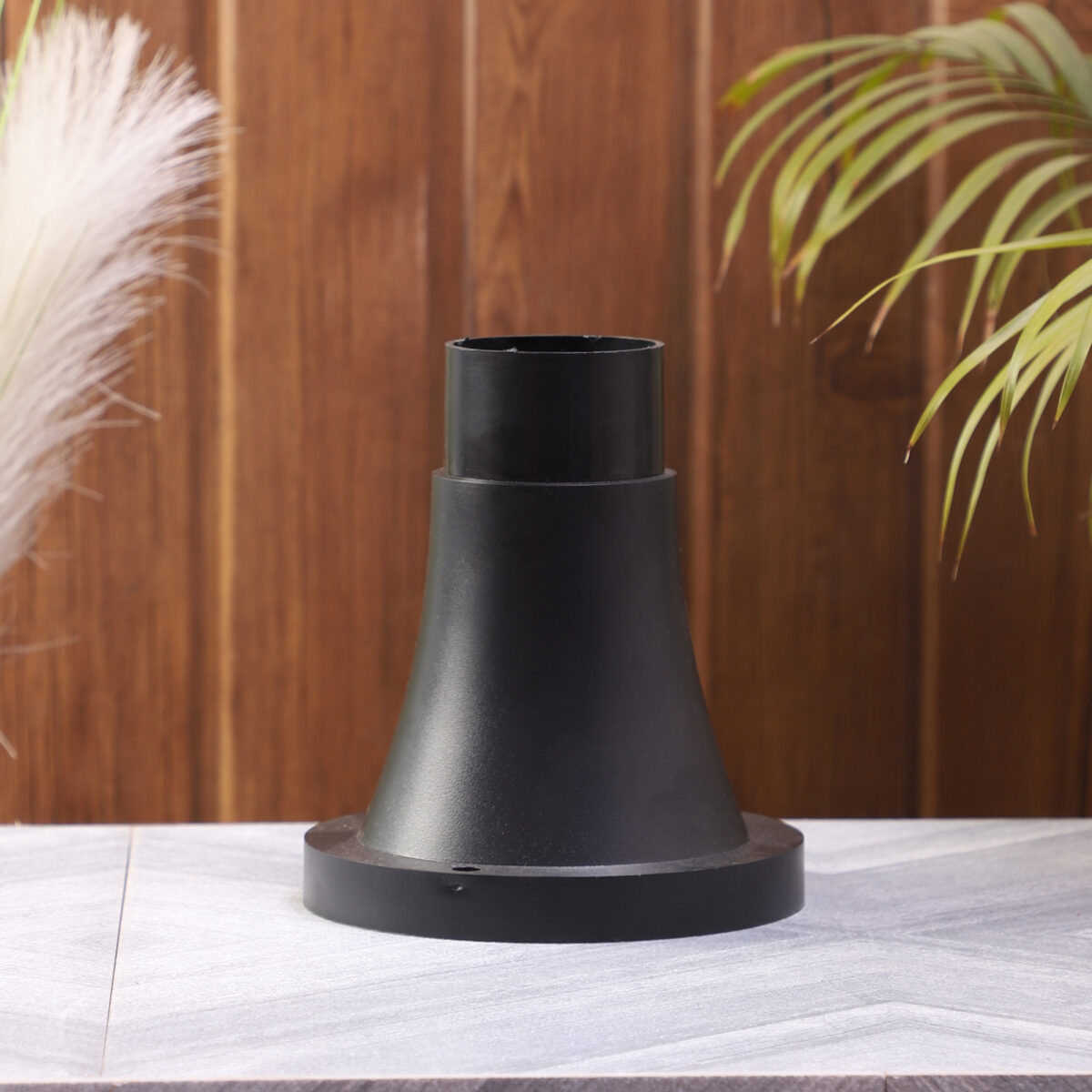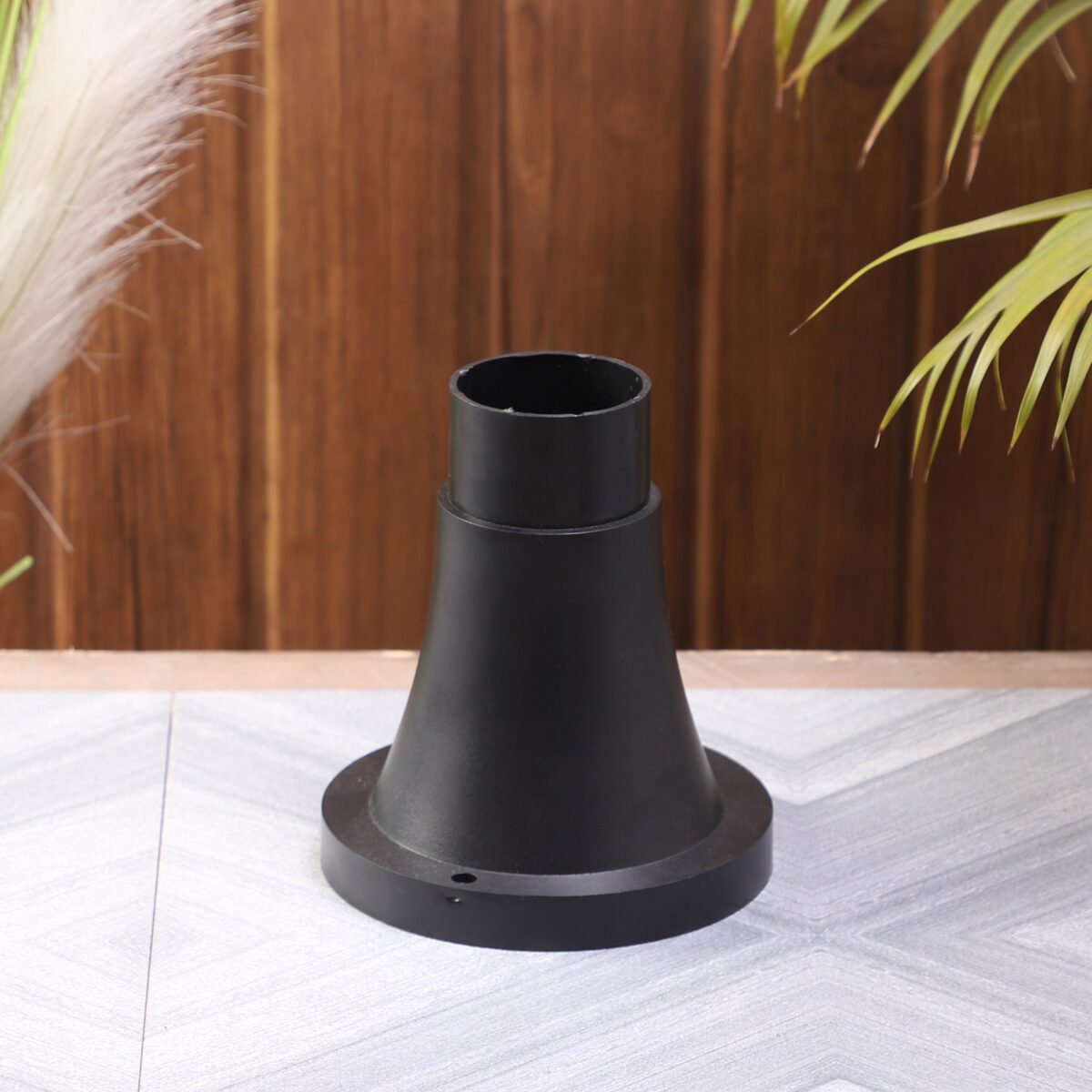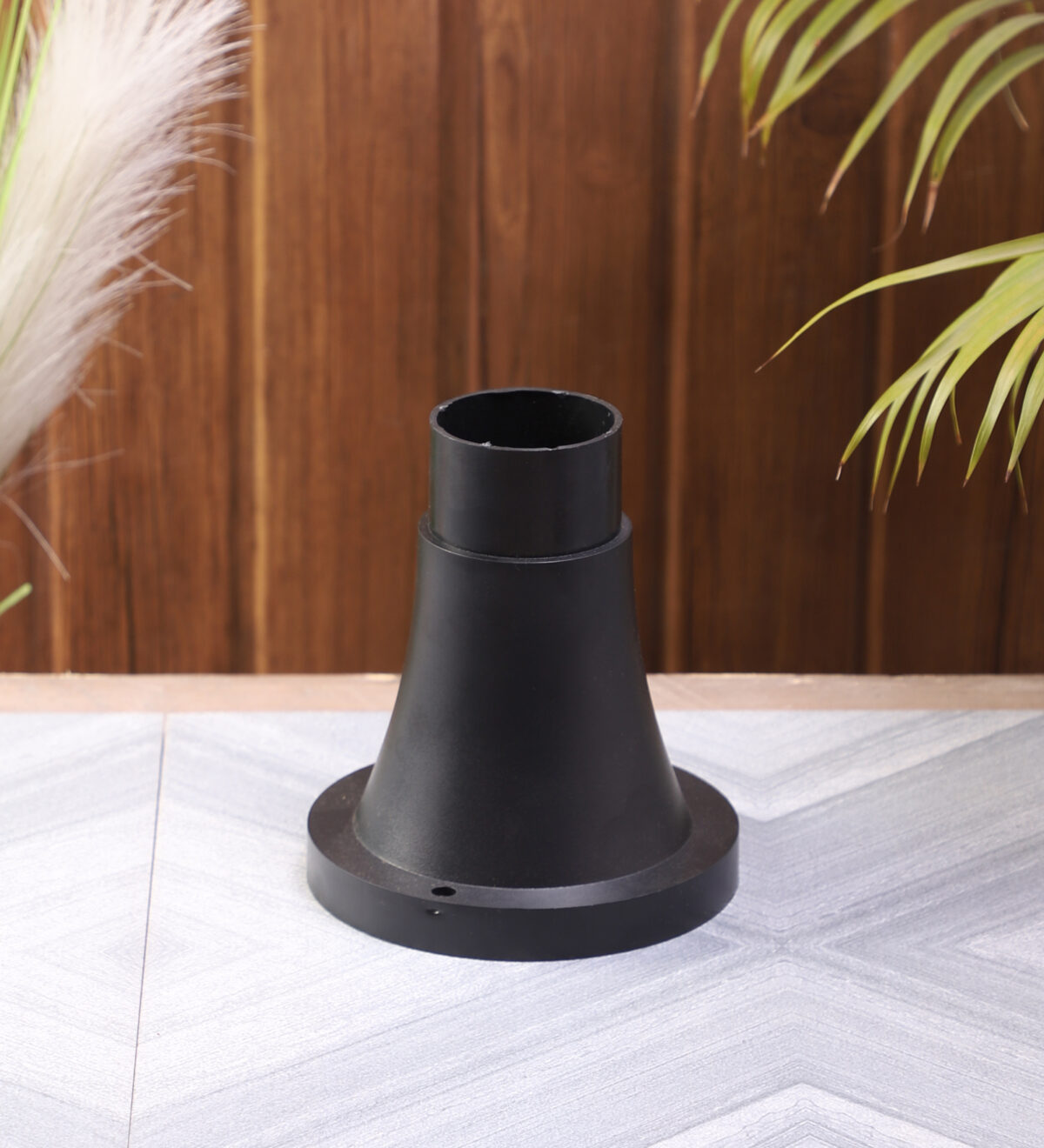 This is an pvc attachement used in many kind of gate lights to install them on a flat top..The diameter of the pipe in which light to be fixed is 2 inches. Stand base is mounted on the flat top with screws and light is mounted on the pipe.