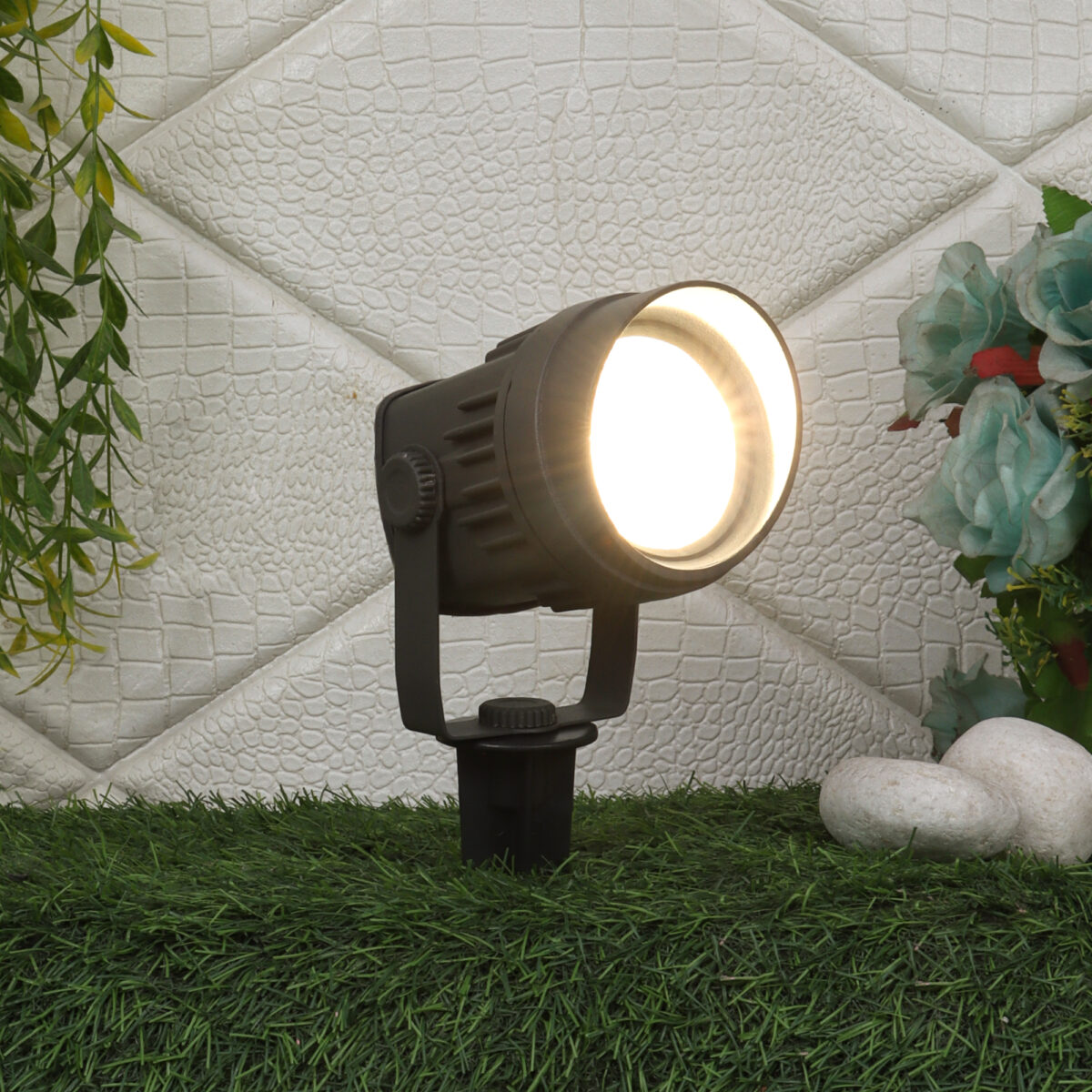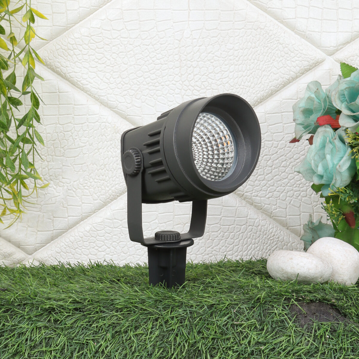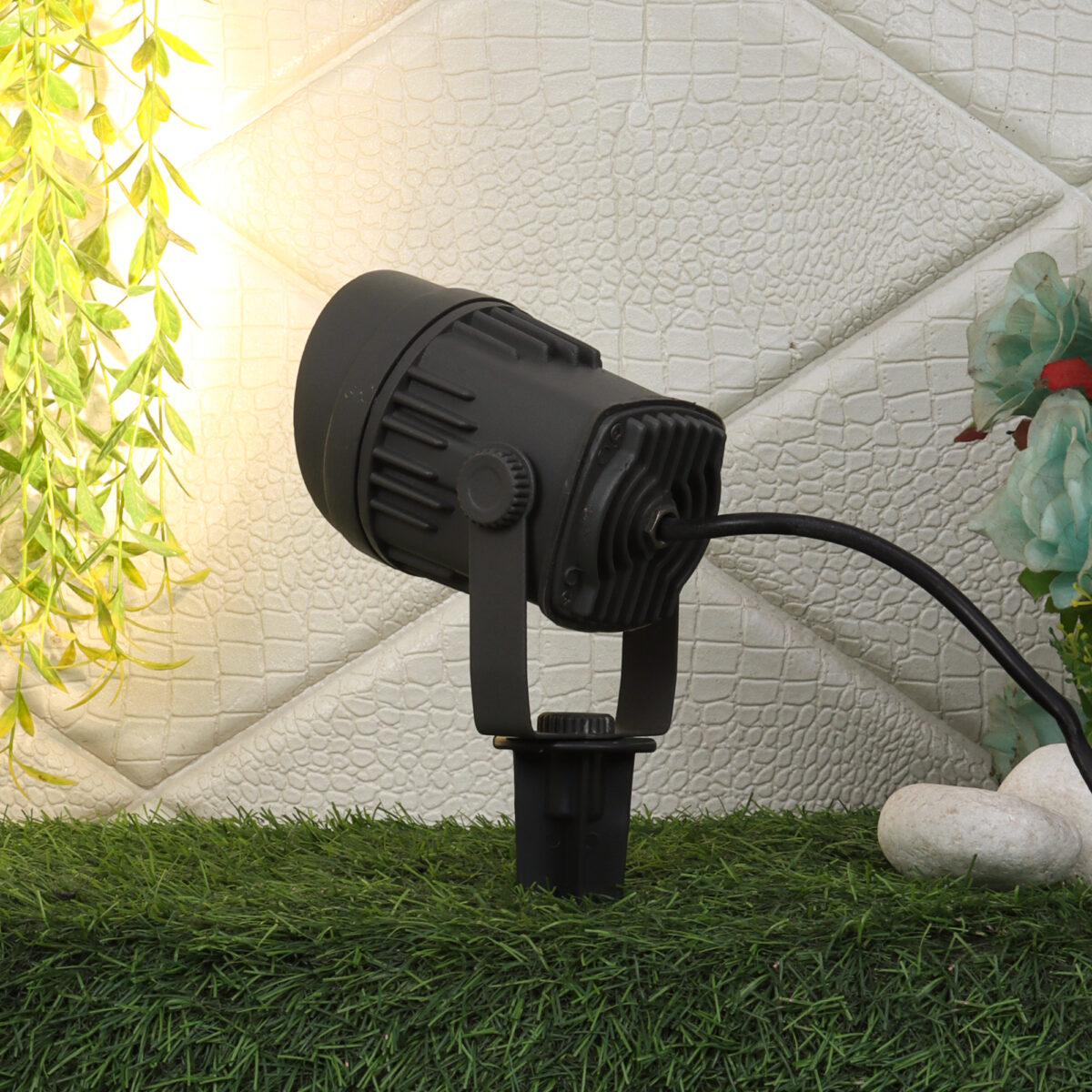 Heavy duty. premium, aluminium die cast outdoor spike light giving warm (yellow) light output, uses high quality LED and driver with high success rate having less than 0.5% replacement. Designed to withstand the harsh conditions of the great outdoors while remaining stylish and functional. Spike lights provide the ultimate flexibility in lighting your garden as they can easily be repositioned when required to illuminate different shrubs and trees throughout the seasons. The head is adjustable allowing you to illuminate any area you desire. Easy for use in gardens small or large.IP65 rated. Protection against splashed water. Also available in small size with 7 watt output.
