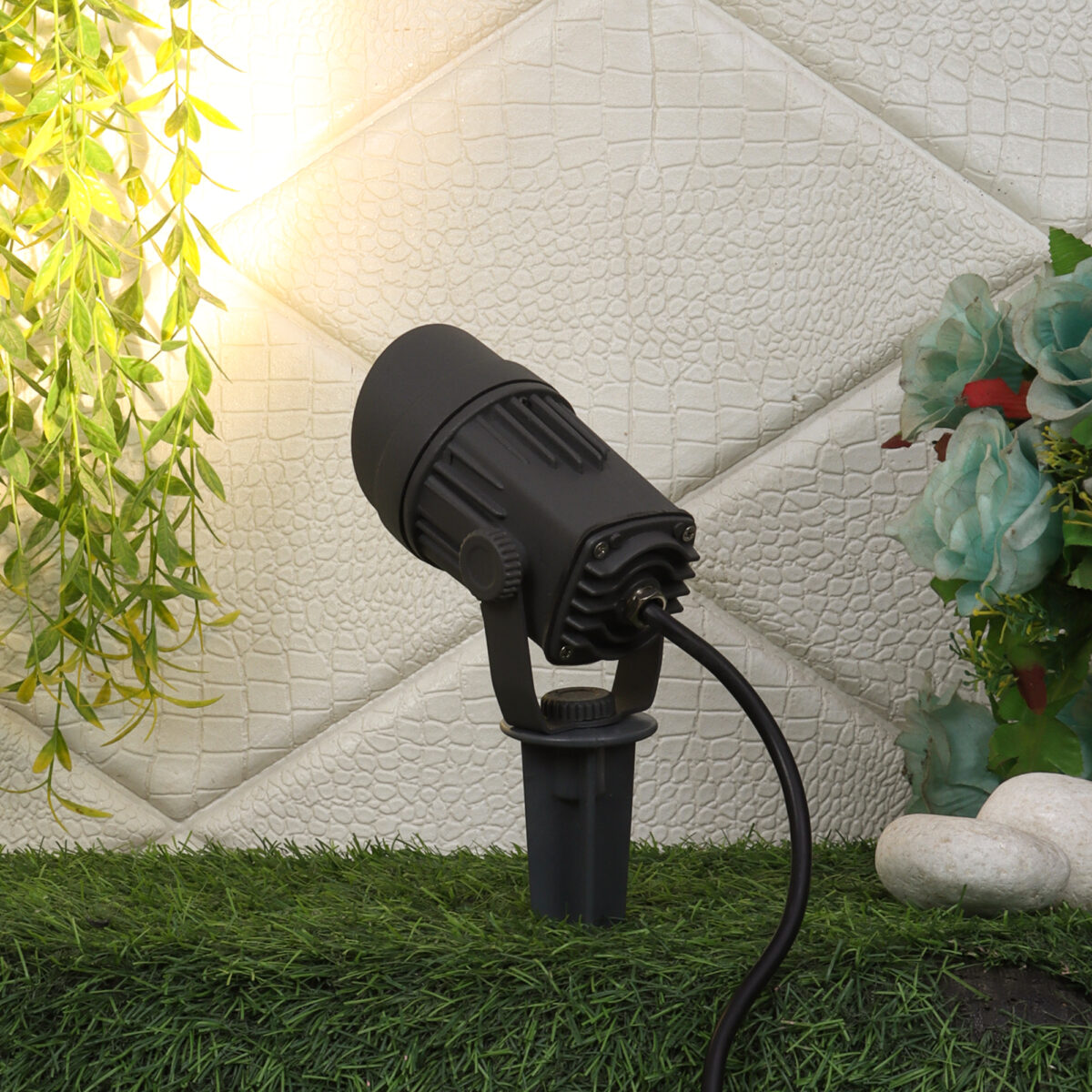 Heavy duty. premium, aluminium die cast outdoor spike light giving warm (yellow) light output, uses high quality LED and driver with high success rate having less than 0.5% replacement. Designed to withstand the harsh conditions of the great outdoors while remaining stylish and functional. Spike lights provide the ultimate flexibility in lighting your garden as they can easily be repositioned when required to illuminate different shrubs and trees throughout the seasons. The head is adjustable allowing you to illuminate any area you desire. Easy for use in gardens small or large.IP65 rated. Protection against splashed water. Also available in big size with 12 watt output.