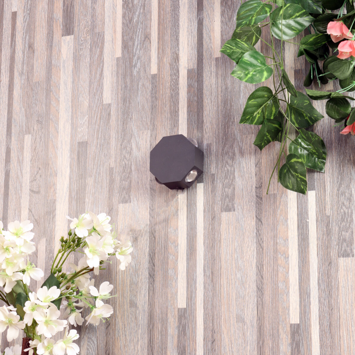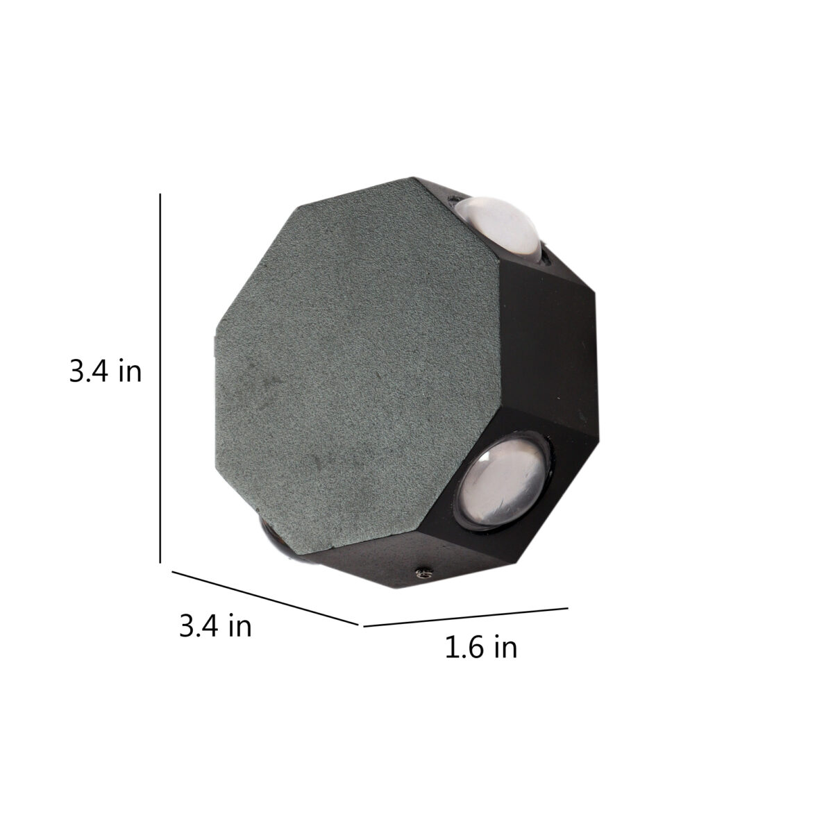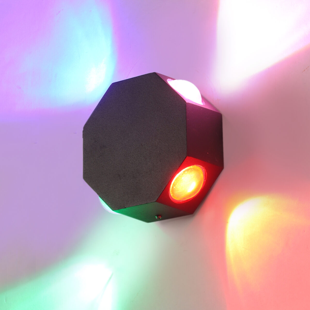 Elegant octagonal shaped aluminum die cast outdoor wall light in grey finish using high quality LED and driver with high success rate having less than 0.5% replacement. It is a four way light with lens to enhance the output to give a defined beam spread in all the four directions in different colours. This in combination with multiple pieces is preferred by the lighting designers to create a lighting effect in a single wide wall, and multiple units are used to create the design. It can be used in both indoor and outdoor applications such as stair case walls, terrace walls, outdoor walls, boundary walls, open parking, stilt parking, basement parking, passage walls. IP65 rated. Protection against splashed water.