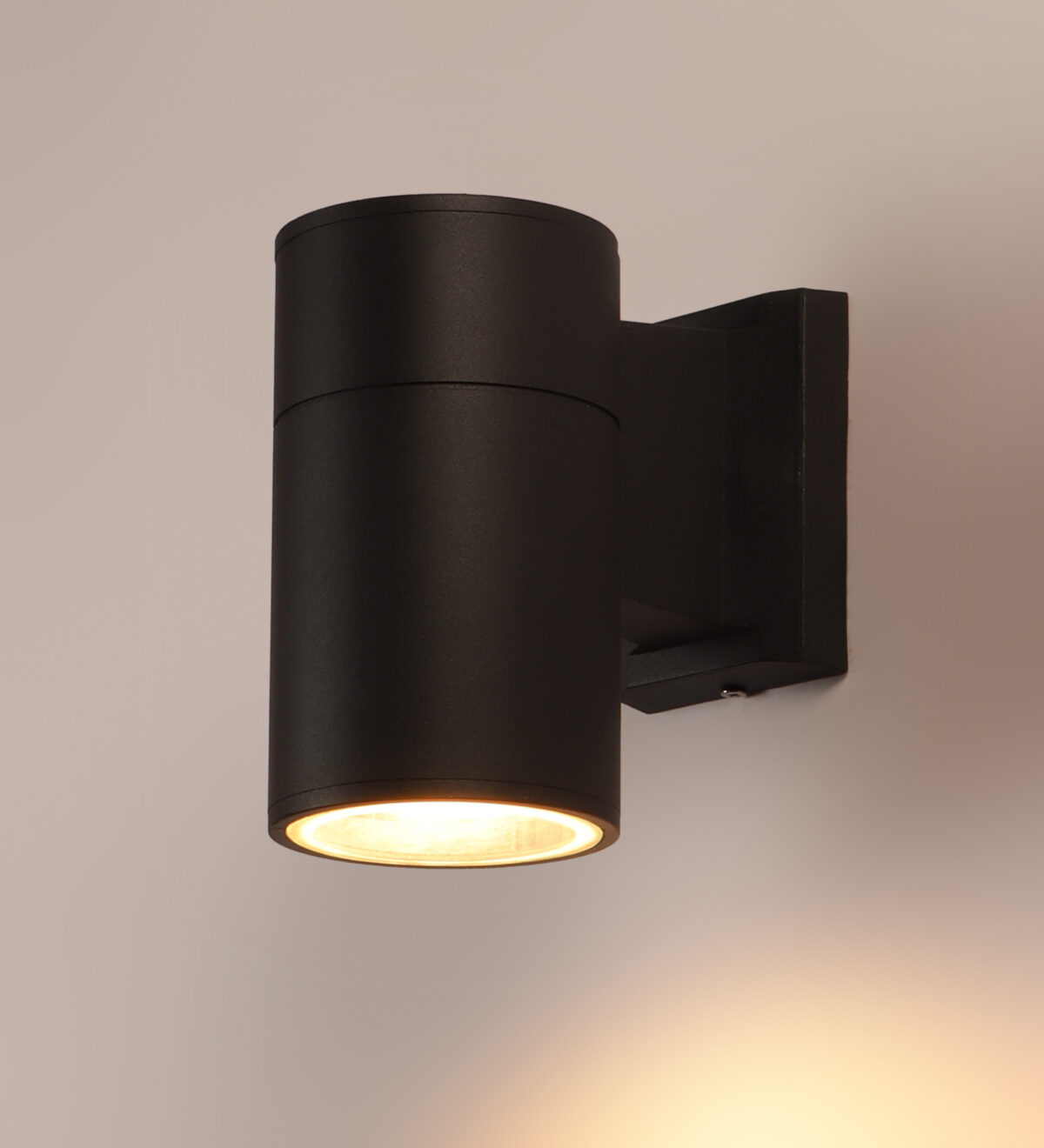Solid, heavy, aluminium die cast, one of top selling export quality cylindrical wall light available in black finish. It is maintenance free, only the change of lamp is required, which is available locally everywhere. It is used with PAR 20 LED lamp to give a very bright output. Suitable for use in wet areas like swimming pools and spas. But equally as stunning when installed indoor around the house. Ideal to highlight the exterior of your property and placed either side of an entrance, parking walls. Rated at IP 54 providing protection from water spray. Lamp not included.