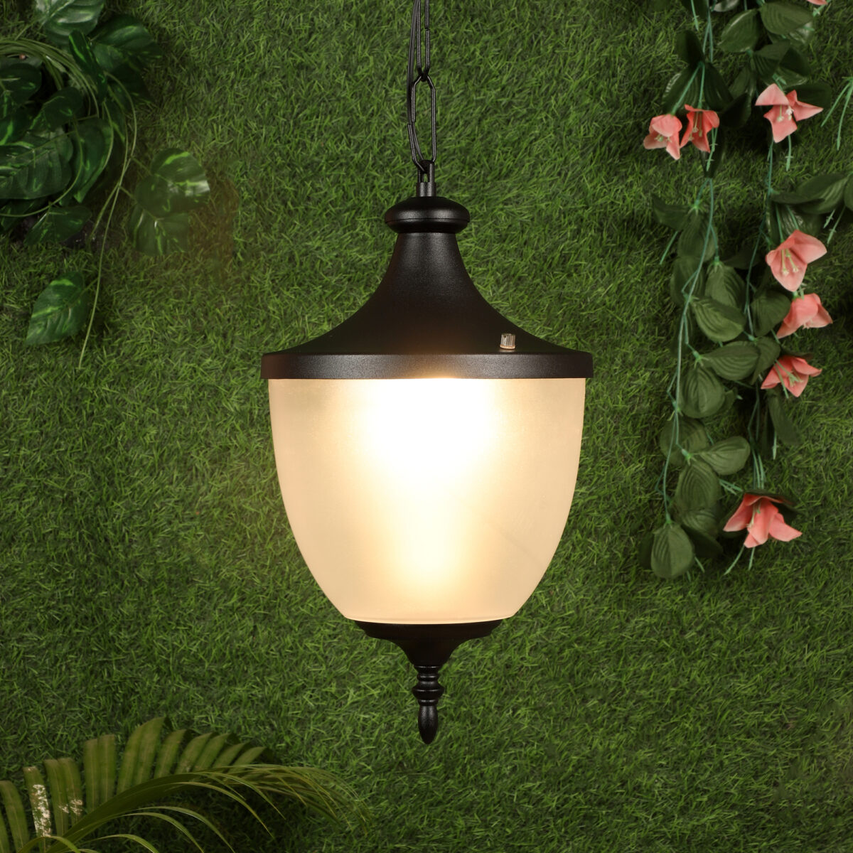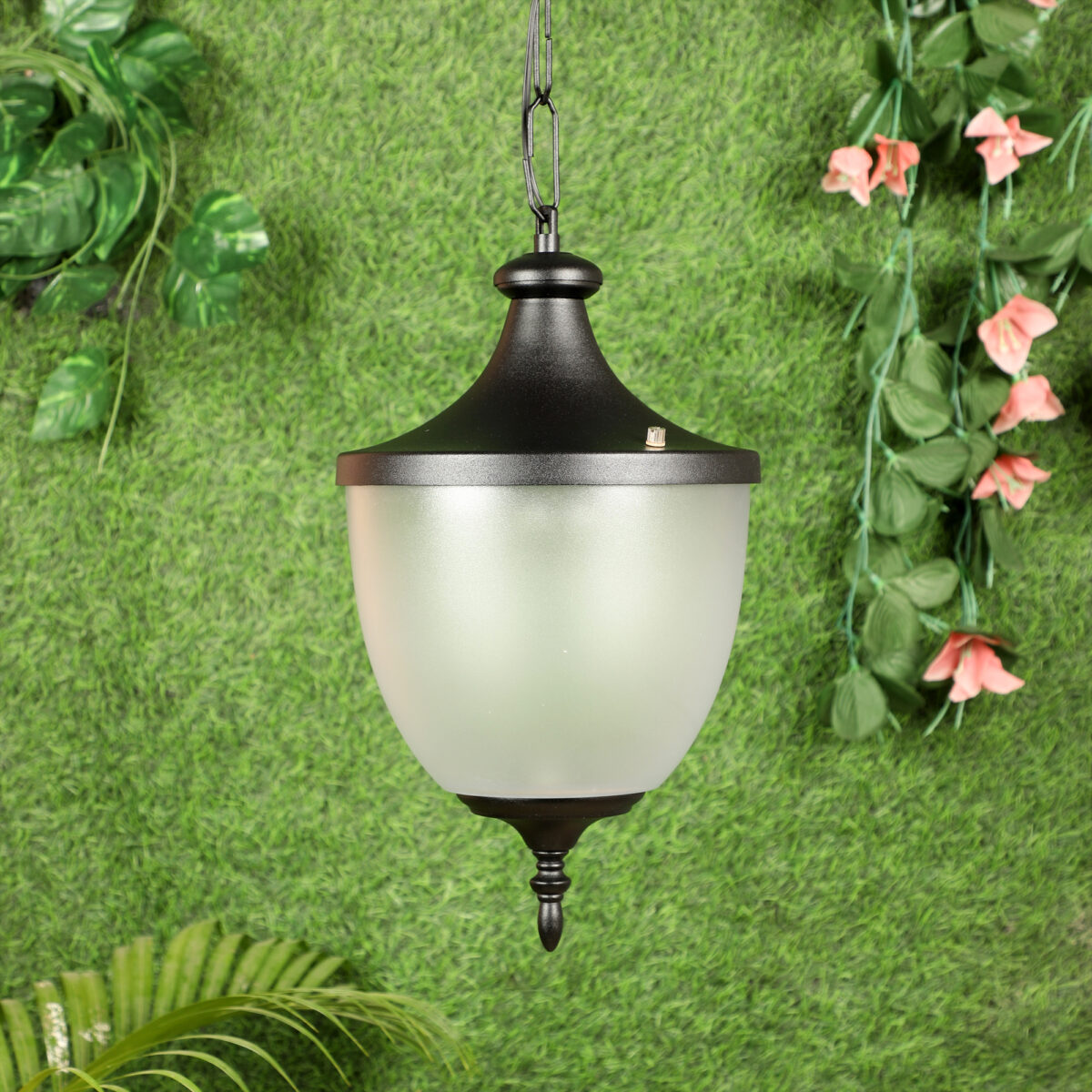 Traditional aluminium die cast, export quality outdoor hanging light in black finish. It is maintenance free, comes with an B22 holder, only the change of lamp is required, which is available locally everywhere. There are many designs in a variety of finishes many of which are part of a family that go with other garden lights. Application areas include building entrance passage, porch, terrace gardens, theme restaurants and bars, farm house, party venues, gazebo. Can be installed indoors also if it matches with the interiors. Matching gate Light – GL4600, Matching wall light – WL1197.
