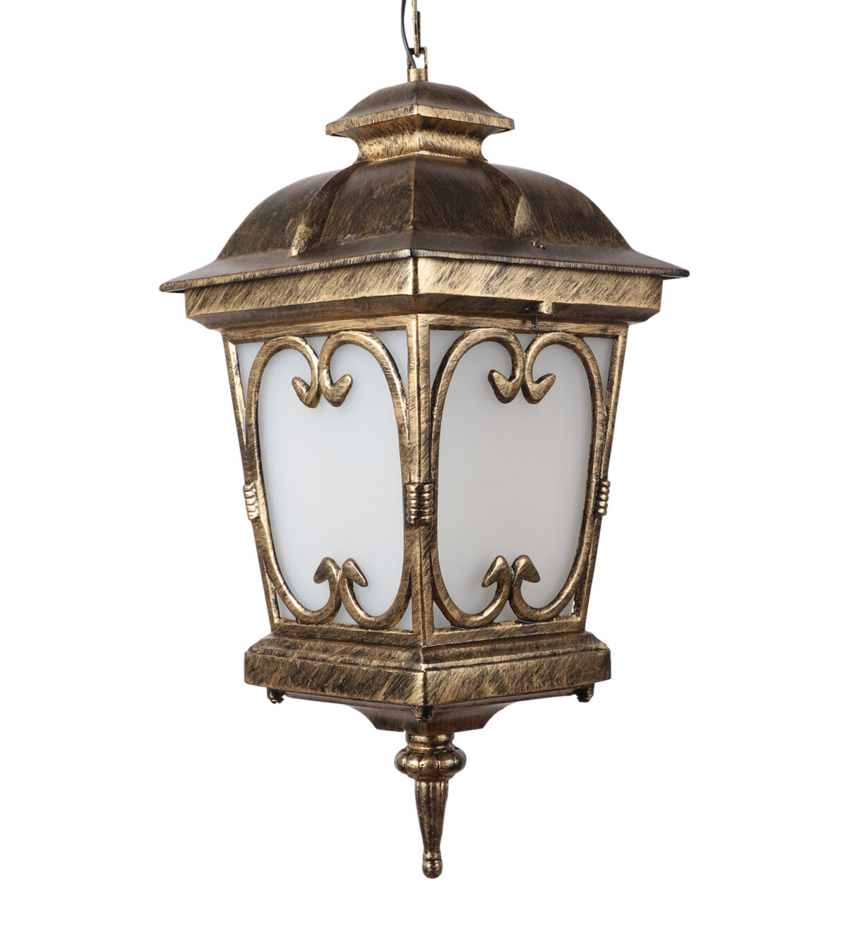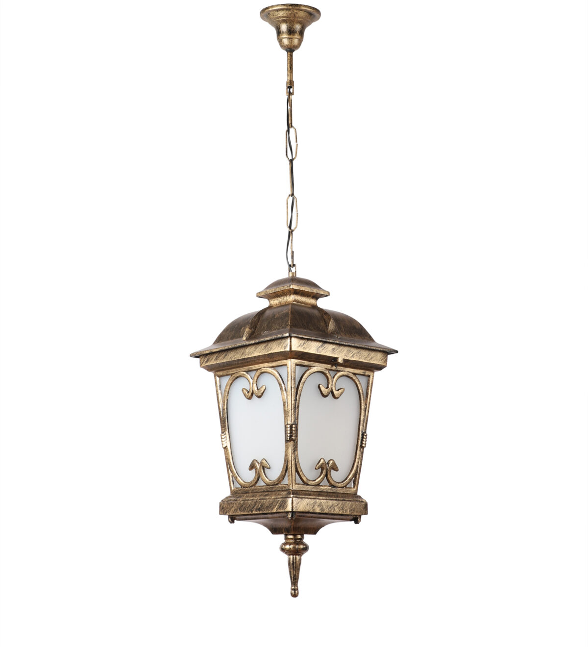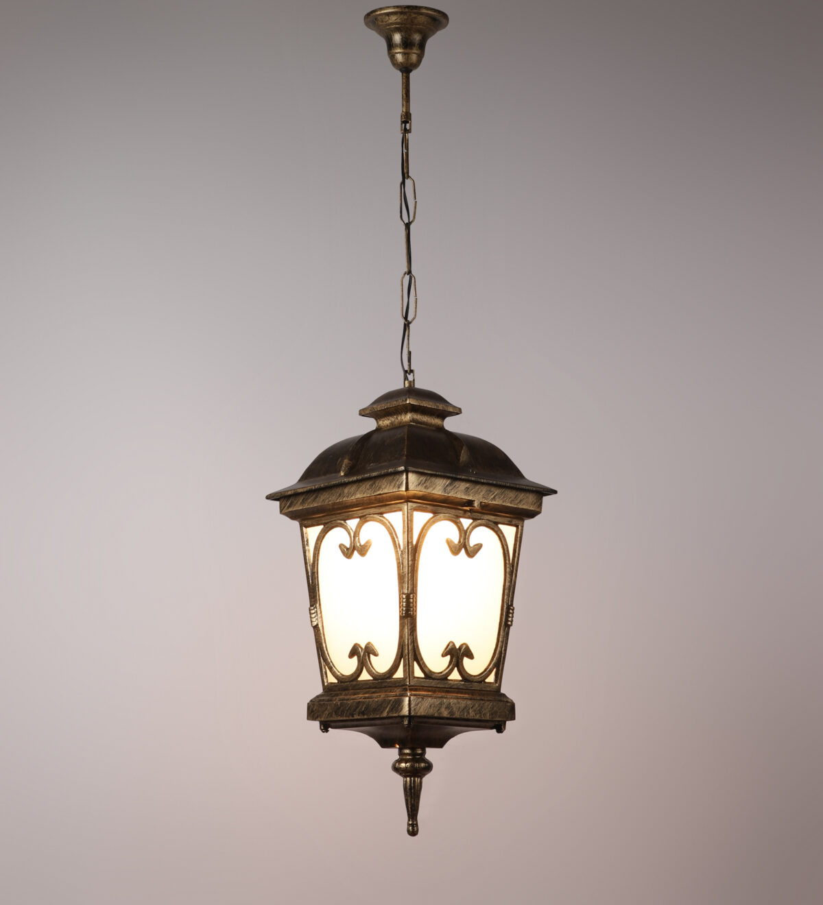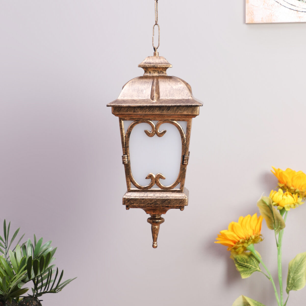 Vertical, heavy, premium, aluminium die cast, export quality traditional outdoor hanging light in antique gold finish. It is maintenance free, comes with an B22 holder, only the change of lamp is required, which is available locally everywhere You can of course swap out the bulb for one that is dimmable, has a higher light output or a different color temperature. IP54 rated providing protection from sprayed water in any direction and making this light perfect for use outdoors, Application areas include Stair case walls, passage to staircase, terrace walls, terrace gardens, outdoor walls, boundary walls, open parking, stilt parking, basement parking, balcony , can also be installed indoors, also suits theme restaurants and bars, premium farm houses and party venues. Matching variations in wall light – WL1143, WL2091, WL2570. Matching variations in Gate Light GL4555, GL4555-M, GL4555-S. Matching bollard – K1068. LAMPS NOT INCLUDED.