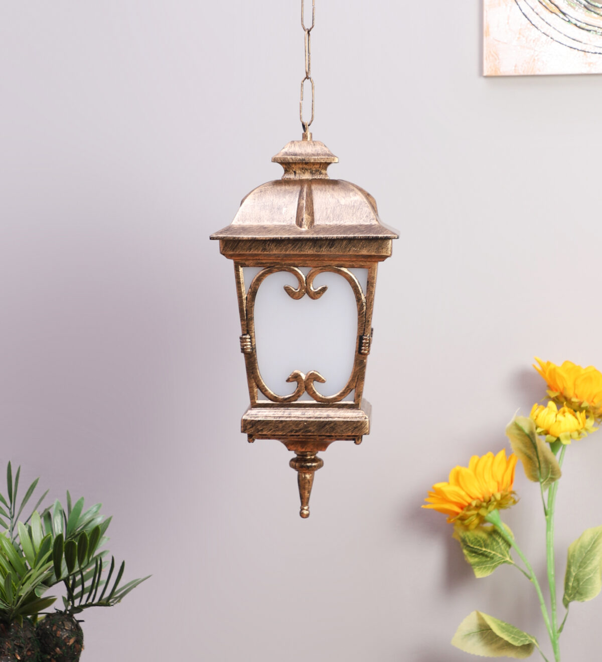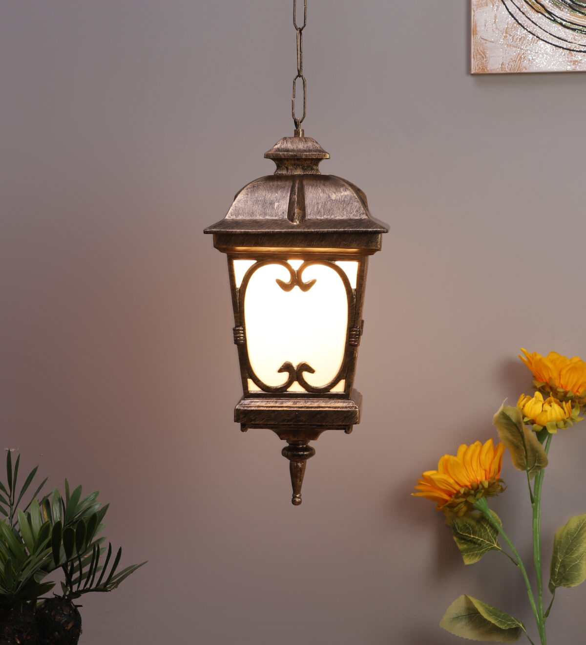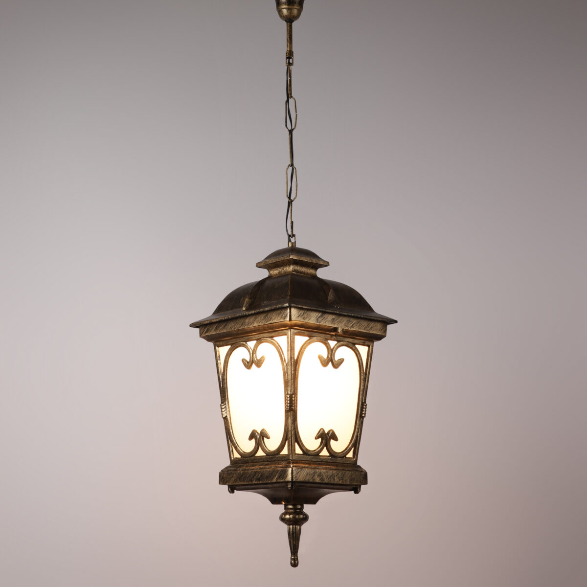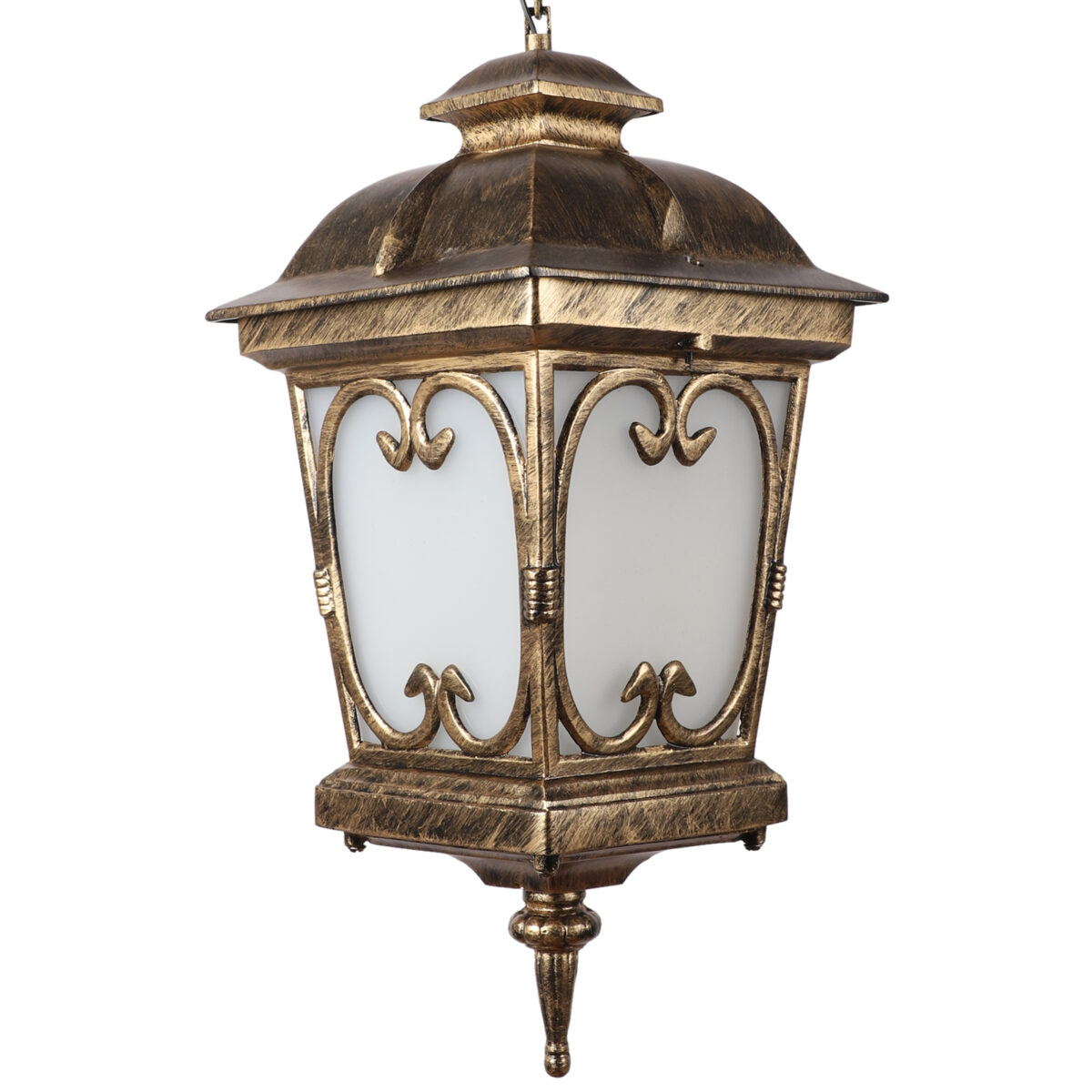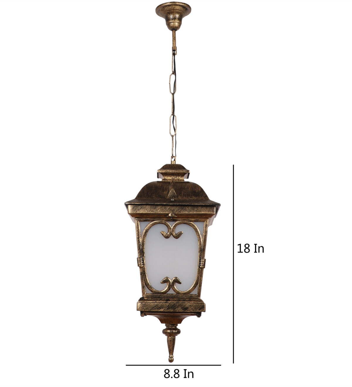 Vertical, heavy, premium, aluminium die cast, export quality traditional outdoor hanging light in antique gold finish. It is maintenance free, comes with an B22 holder, only the change of lamp is required, which is available locally everywhere You can of course swap out the bulb for one that is dimmable, has a higher light output or a different color temperature. IP54 rated providing protection from sprayed water in any direction and making this light perfect for use outdoors, Application areas include Stair case walls, passage to staircase, terrace walls, terrace gardens, outdoor walls, boundary walls, open parking, stilt parking, basement parking, balcony , can also be installed indoors, also suits theme restaurants and bars, premium farm houses and party venues. Matching variations in wall light – WL1143, WL2091, WL2570. Matching variations in Gate Light GL4555, GL4555-M, GL4555-S. Matching bollard – K1068. LAMPS NOT INCLUDED.