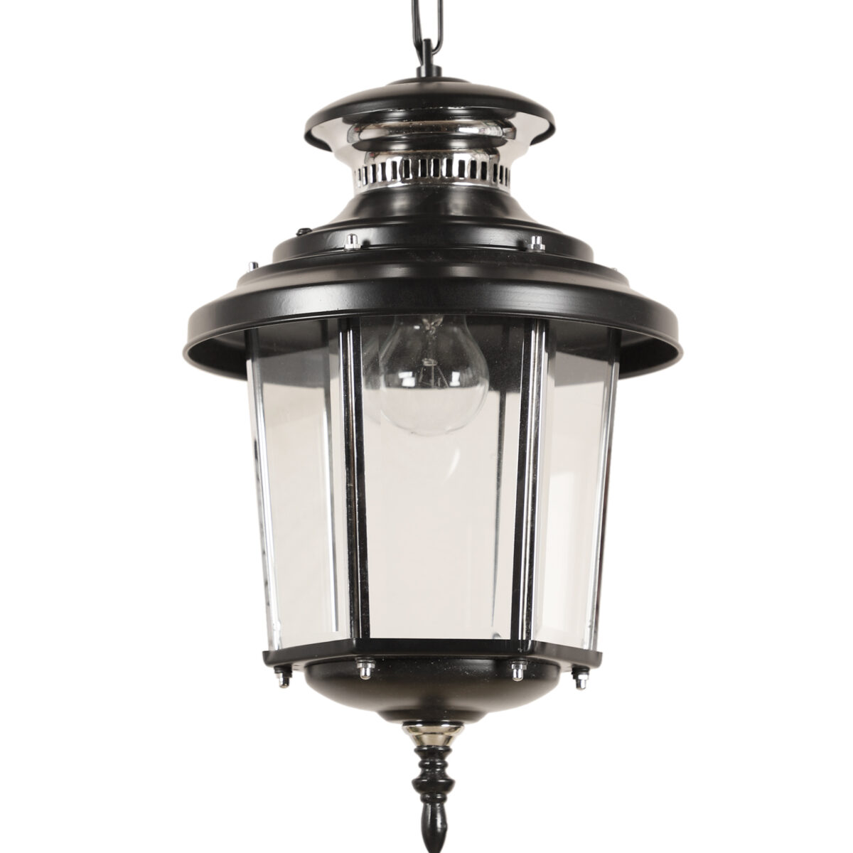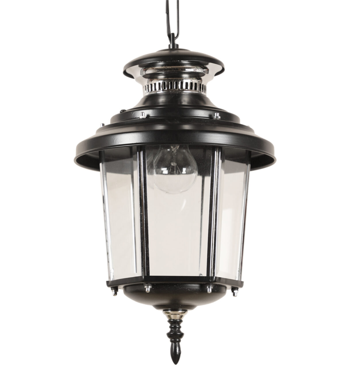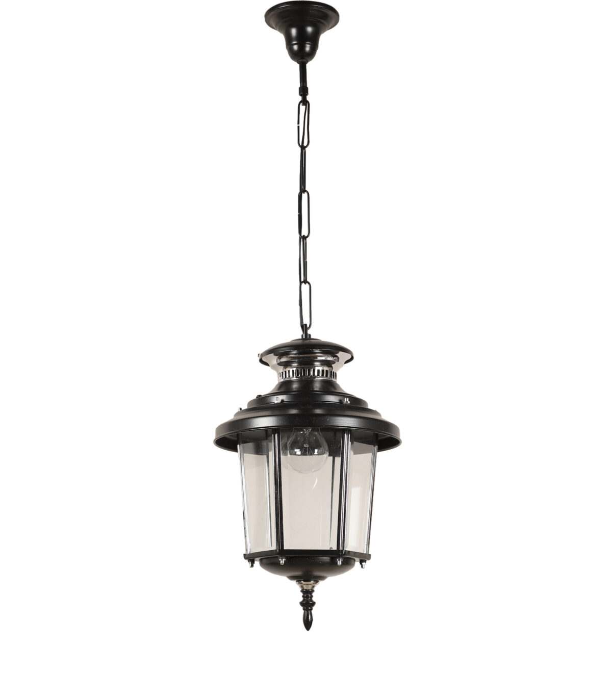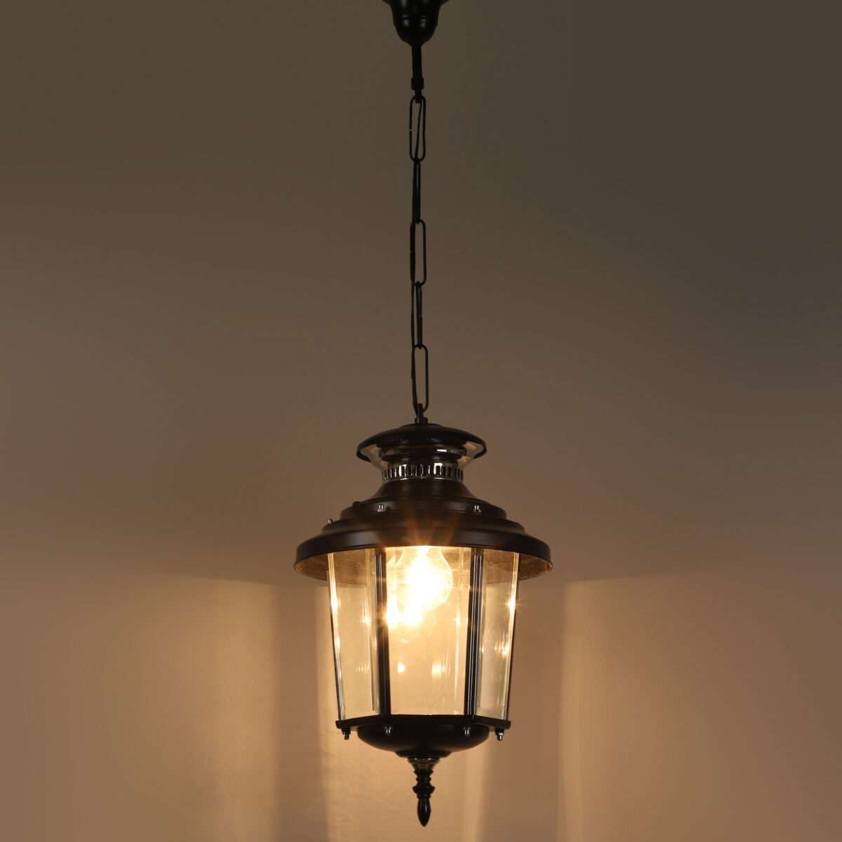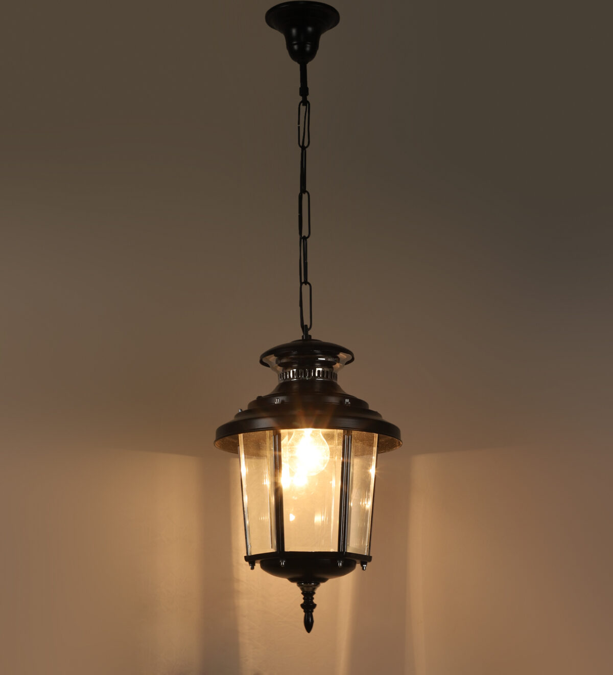 Traditional, aluminium sheet, premium one of top selling export quality outdoor hanging light in black finish. It is maintenance free, comes with an B22 holder, only the change of lamp is required, which is available locally everywhere. There are many designs in a variety of finishes many of which are part of a family that go with other garden lights. .Application areas include building entrance passage, porch, terrace gardens, theme restaurants and bars, farm house, party venues, gazebo. Can be installed indoors also it it matches with the interiors. Matching variants GL4659, GL4846, K1066, WL1831, GL4763 WL2071. LAMP NOT INCLUDED.