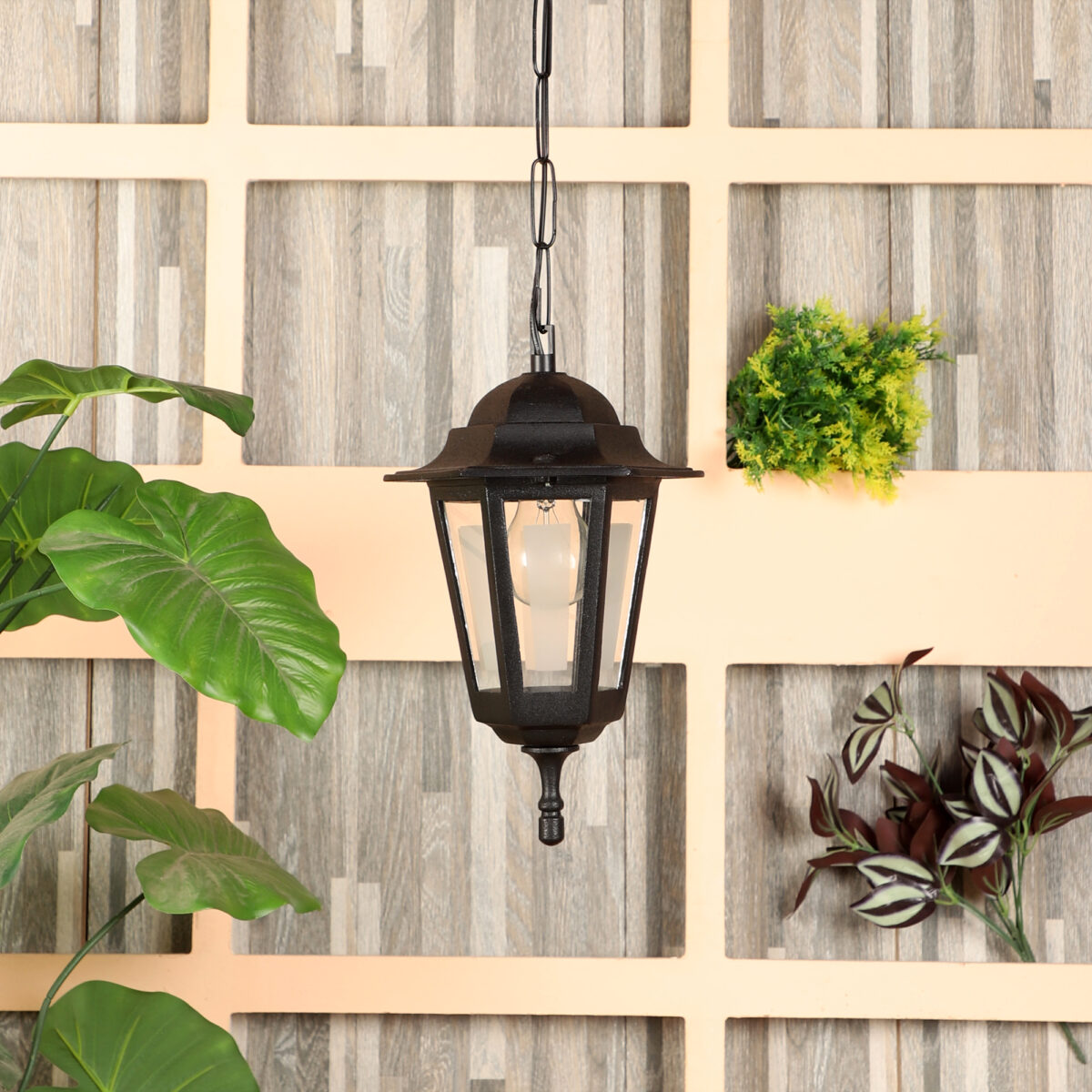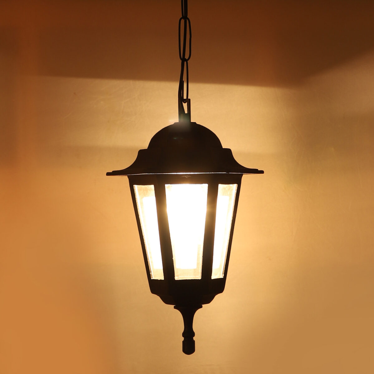 Traditional heavy duty aluminium die cast, outdoor hanging light in black finish. It is maintenance free, comes with an B22 holder, only the change of lamp is required, which is available locally everywhere. Application areas include building entrance passage, porch, terrace gardens, theme restaurants and bars, farm house, party venues, gazebo. Can be installed indoors also it it matches with the interiors. LAMP NOT INCLUDED.