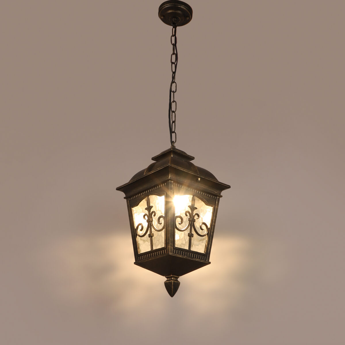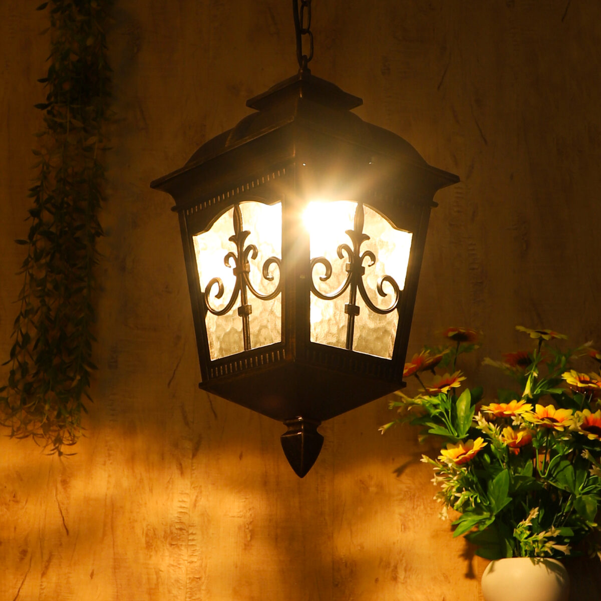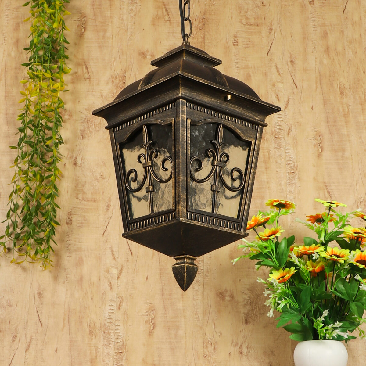 Vertical, premium, aluminium die cast, traditional outdoor hanging light in antique gold finish. It is maintenance free, comes with an B22 holder, only the change of lamp is required, which is available locally everywhere You can of course swap out the bulb for one that is dimmable, has a higher light output or a different color temperature. IP54 rated providing protection from sprayed water in any direction and making this light perfect for use outdoors, Application areas include Stair case, passage to staircase, terrace walls, terrace gardens, outdoor walls, boundary walls, open parking, stilt parking, basement parking, balcony , can also be installed indoors, also suits theme restaurants and bars, premium farm houses and party venues. LAMPS NOT INCLUDED.