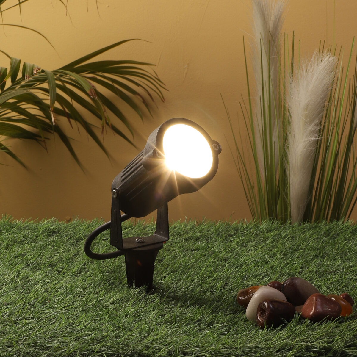 Aluminium die cast outdoor spike light giving warm (yellow) light output, uses high quality LED and driver with high success rate having less than 0.5% replacement. Designed to withstand the harsh conditions of the great outdoors while remaining stylish and functional. Spike lights provide the ultimate flexibility in lighting your garden as they can easily be repositioned when required to illuminate different shrubs and trees throughout the seasons. The head is adjustable allowing you to illuminate any area you desire. Easy for use in gardens small or large.IP54 rated, protection against splashed water.