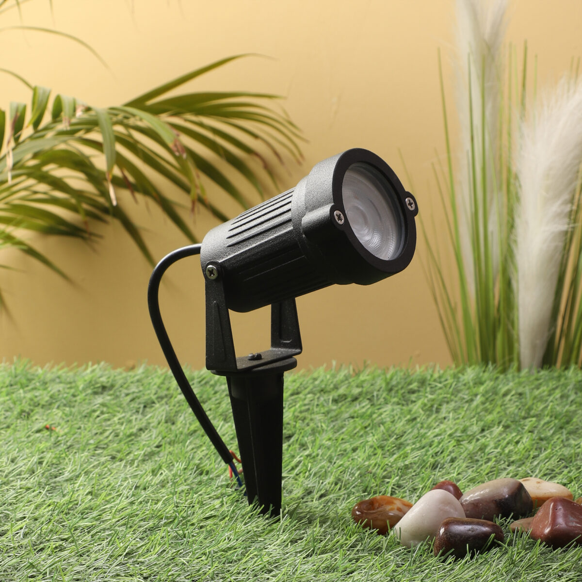 Aluminium die cast outdoor spike light It is maintenance free. It comes with a branded GU10 LED lamp with warm (yellow) light output, which is available locally everywhere in different wattage and color temperatures. Designed to withstand the harsh conditions of the great outdoors while remaining stylish and functional. Spike lights provide the ultimate flexibility in lighting your garden as they can easily be repositioned when required to illuminate different shrubs and trees throughout the seasons. The head is adjustable allowing you to illuminate any area you desire. Easy for use in gardens small or large.IP54 rated, protection against splashed water.