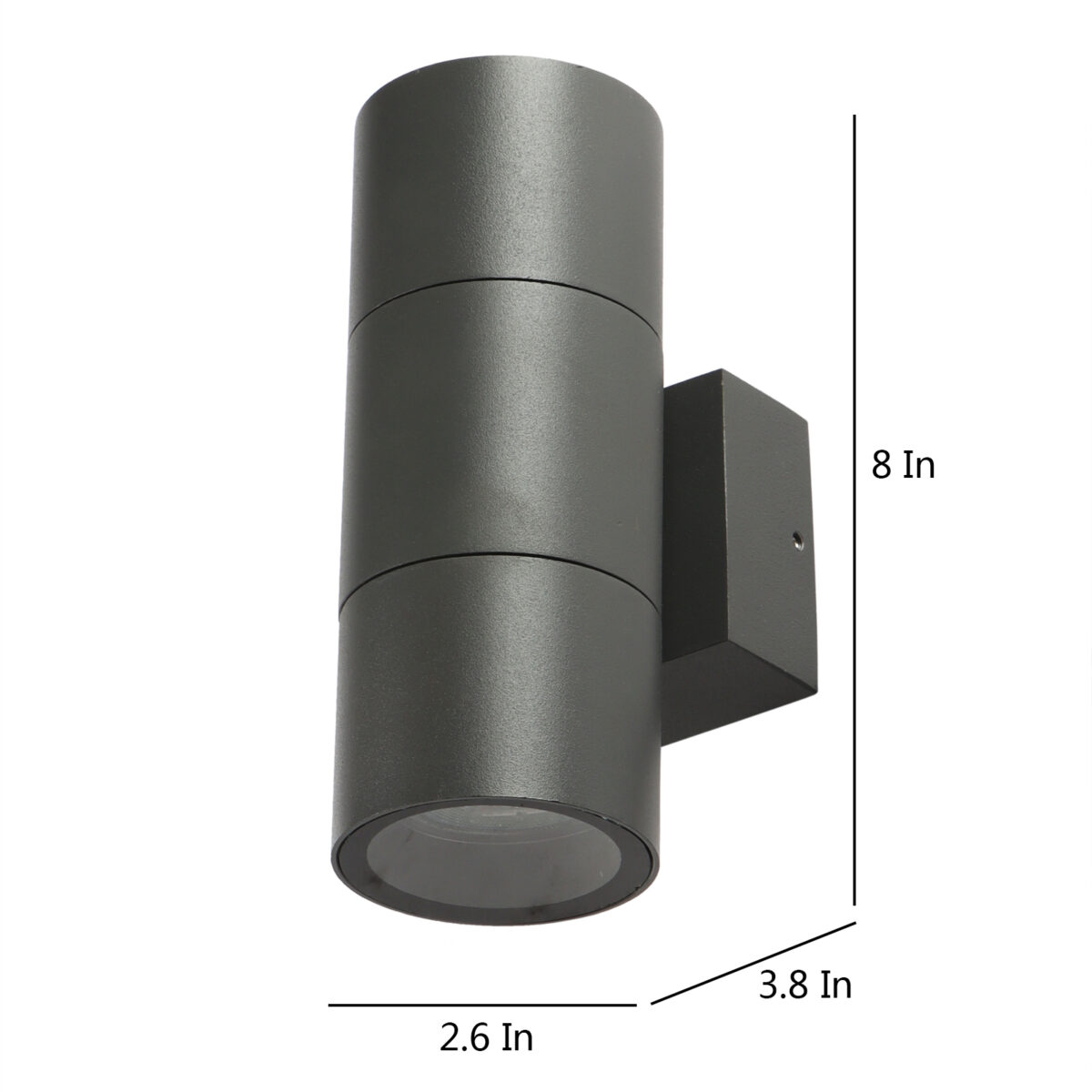 Aluminium die cast one of the top selling export quality modern cylindrical wall light, providing up and down lighting, available in a sophisticated grey finish, perfect to use outdoors. It is maintenance free, only the change of lamp is required which is available locally everywhere. Excellent for installing in many locations such as front doors, garden walls, sheds and garages, parking. Can be dimmed if used with a dimmable lamp. Rated at IP54 it is intended for exterior use it can also be installed inside if you wish. Lamp not included.