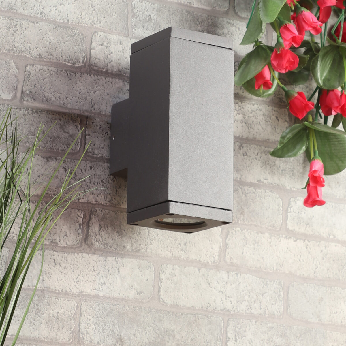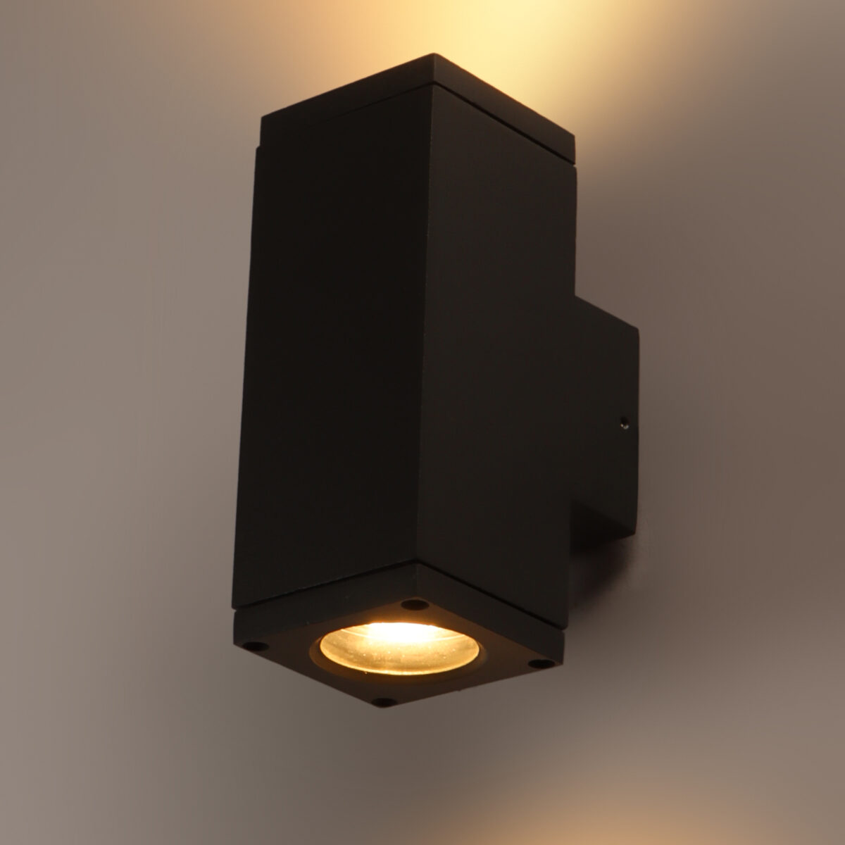 Aluminium die cast one of the top selling export quality modern square wall light, providing up and down lighting, available in a sophisticated grey finish, perfect to use outdoors. It is maintenance free, only the change of lamp is required which is available locally everywhere. Excellent for installing in many locations such as front doors, garden walls, sheds and garages, parkings. Can be dimmed if used with a dimmable lamp. Rated at IP54 it is intended for exterior use it can also be installed inside if you wish. Lamp not included.
