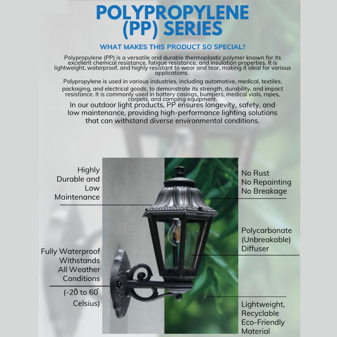 SUPERSCAPE PP series rust free unbreakable recyclable eco friendly wall light.