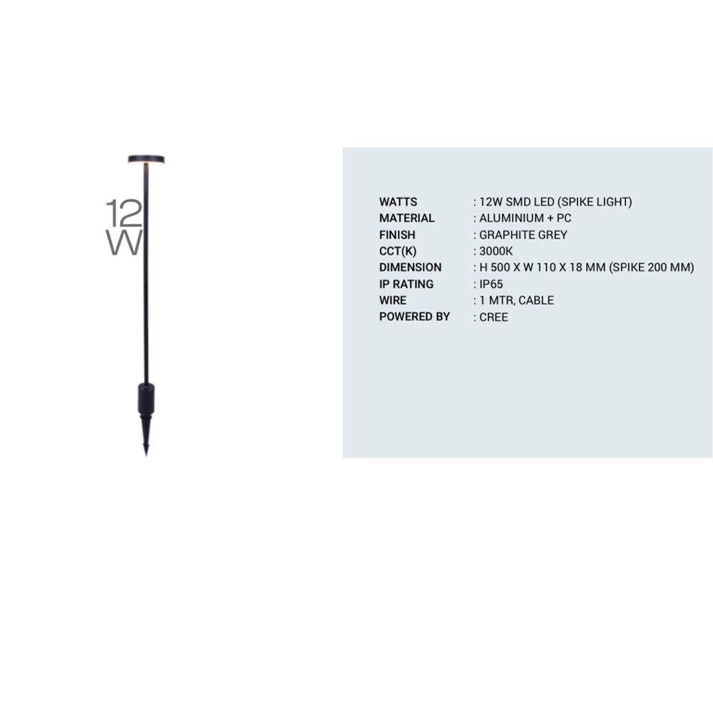 SUPERSCAPE premium aluminium grey finish 12 watt 20 inch spike light 3K.