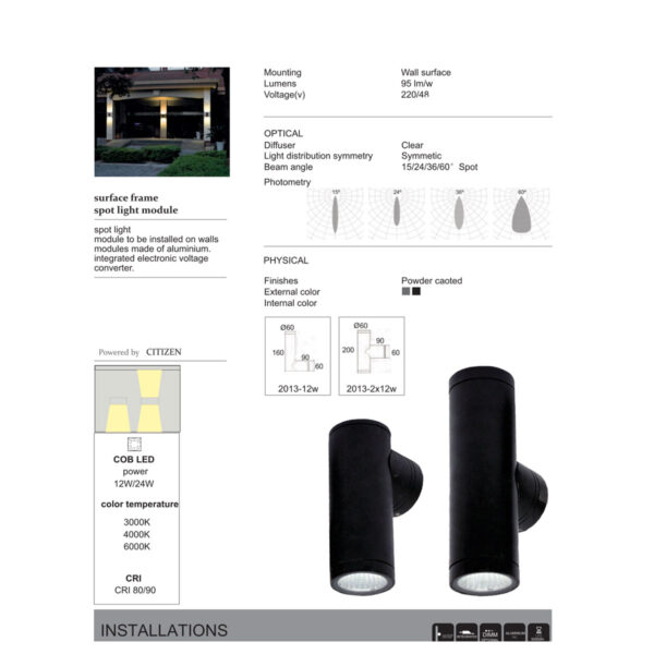 SUPERSCAPE Slim Exterior up or down 12 watt LED wall light powered by Citizen COB with high quality LED driver WL3228