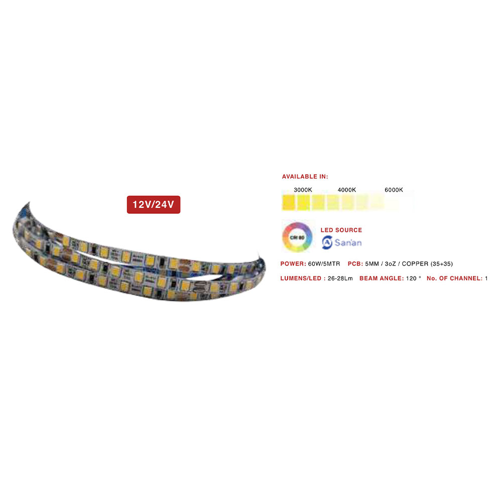 Ultra premium 2835 24V 180 LED per meter strip 80 watt 10 mm 5 meter roll without driver.