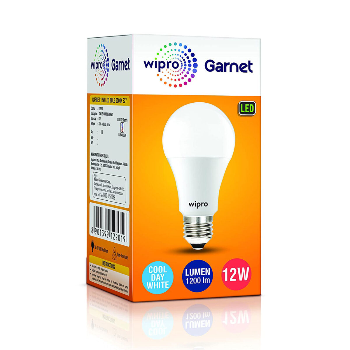 The Garnet 12W LED Bulb saves 85% energy and provides more brightness and good light distribution, through its innovatively designed optics. Following features makes the Wipro Garnet 12W LED Bulb the best in class lighting solution