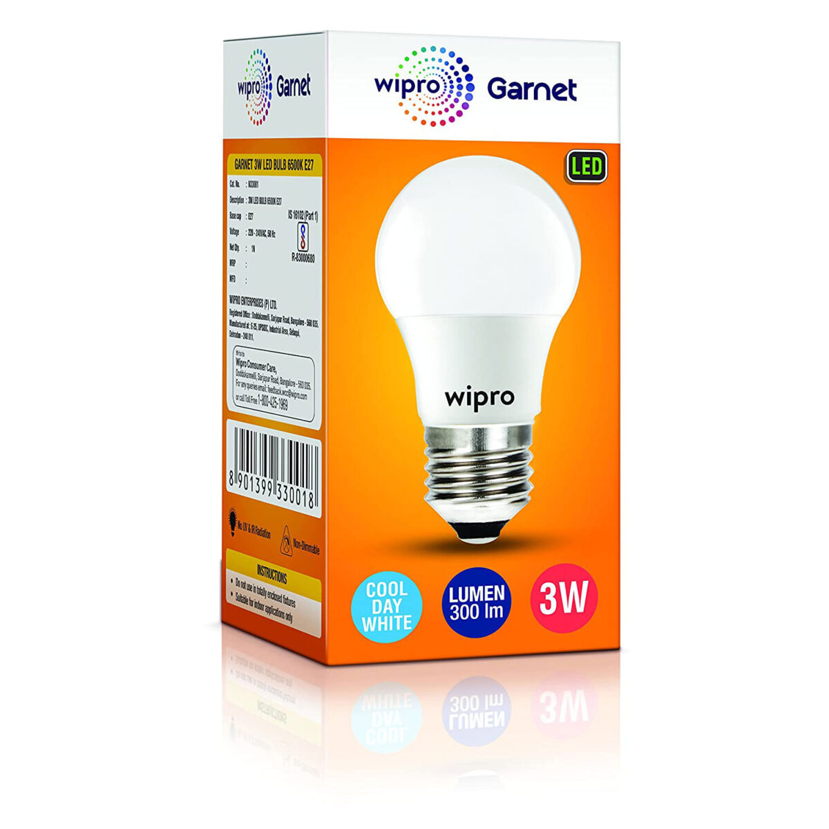 Wipro Garnet 3 watt LED bulb E27 2700K WP1126 Wipro Garnet 3 watt LED bulb E27 2700K WP1126 Original price was: ₹130.Current price is: ₹56. Inc. GST