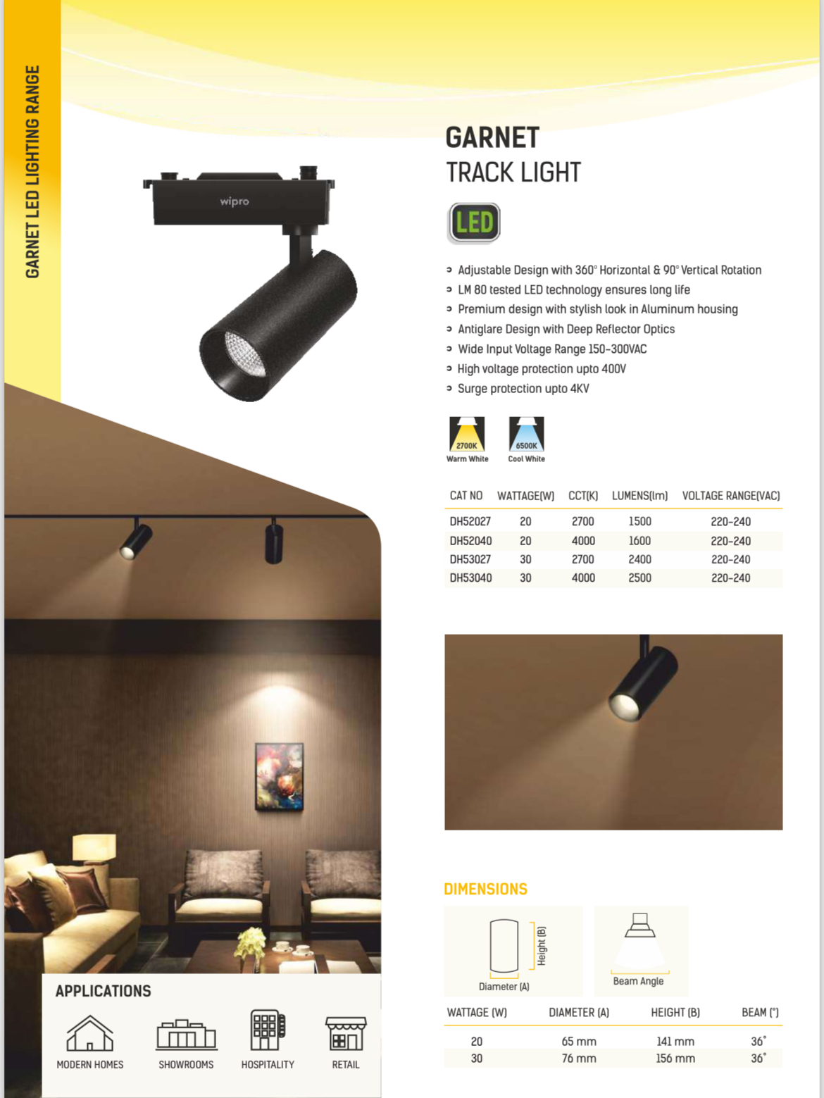Wipro Garnet 30 watt track light black finish 4000K WP1320
