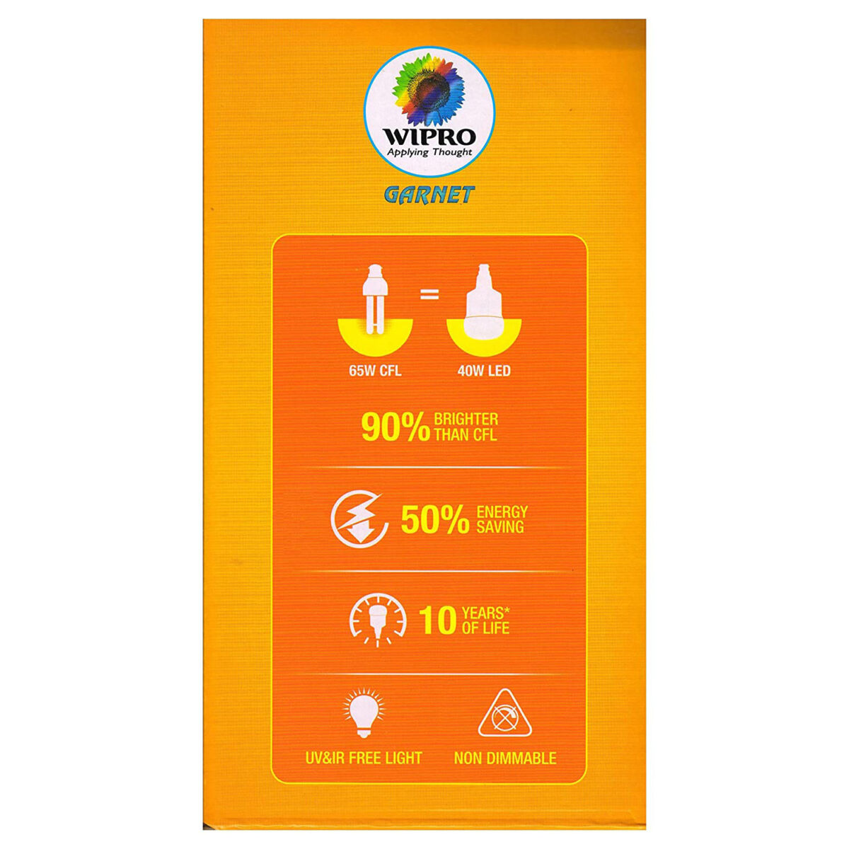 The Garnet 40W LED Bulb saves 85% energy and provides more brightness and good light distribution, through its innovatively designed optics. Following features makes the Wipro Garnet 40W LED Bulb the best in class lighting solution