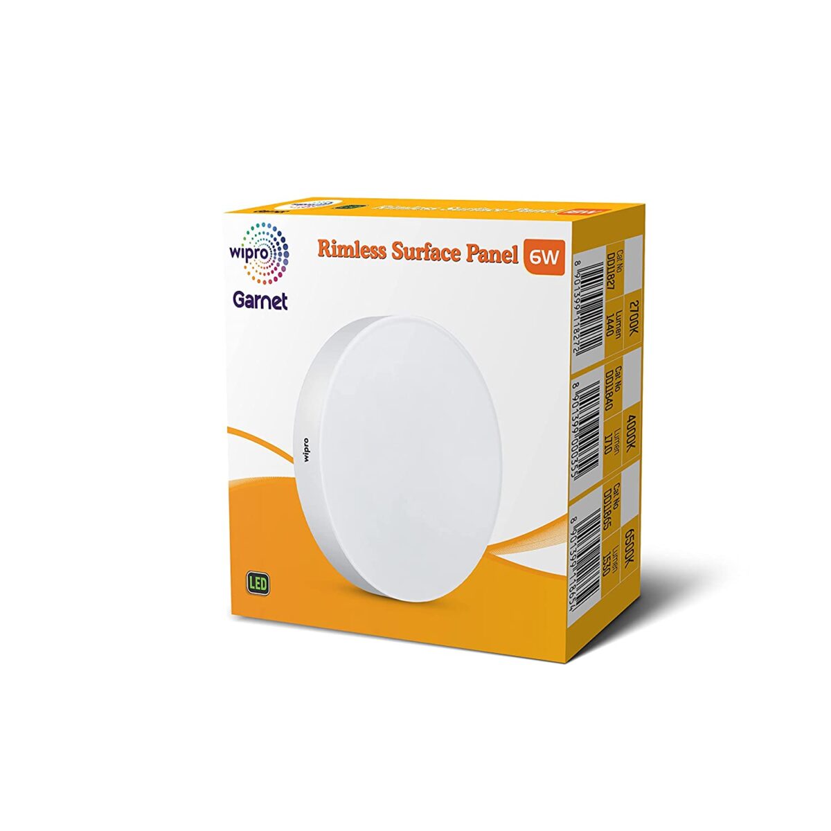 WIPRO GARNET 6 WATT ROUND RIMLESS SURFACE PANEL 6500K WP1177