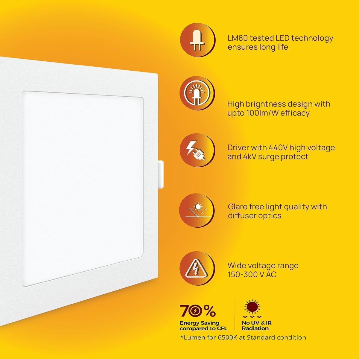 Wipro Garnet Alpha 8 watt square LED panel light 4000K.