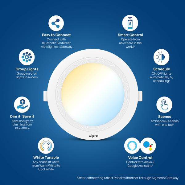 • Smart Control: Forgot to turn your lights off? Now, control Lights from anywhere in the world with your mobile using Wipro Next Smart Home App* *After connecting Smart panel to internet through Sigmesh Gateway