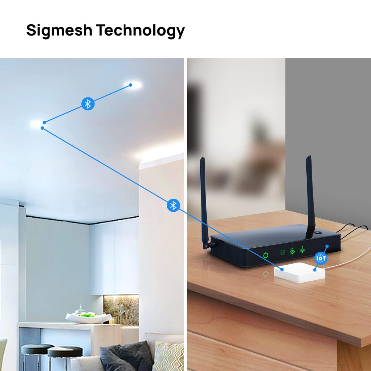 • Sigmesh Technology: The lights are connected by Sigmesh Bluetooth Network by default for seamless connectivity. You can connect the lights with Internet, by pairing with Wipro Sigmesh Gateway, for optimal utilization of Wi-Fi Router
