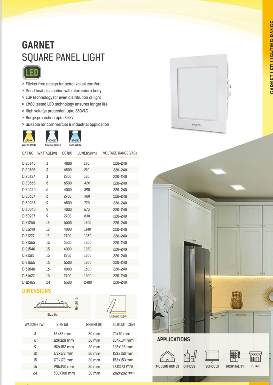 Wipro Garnet Square aluminium panel light 16 watt 2700K WP1448