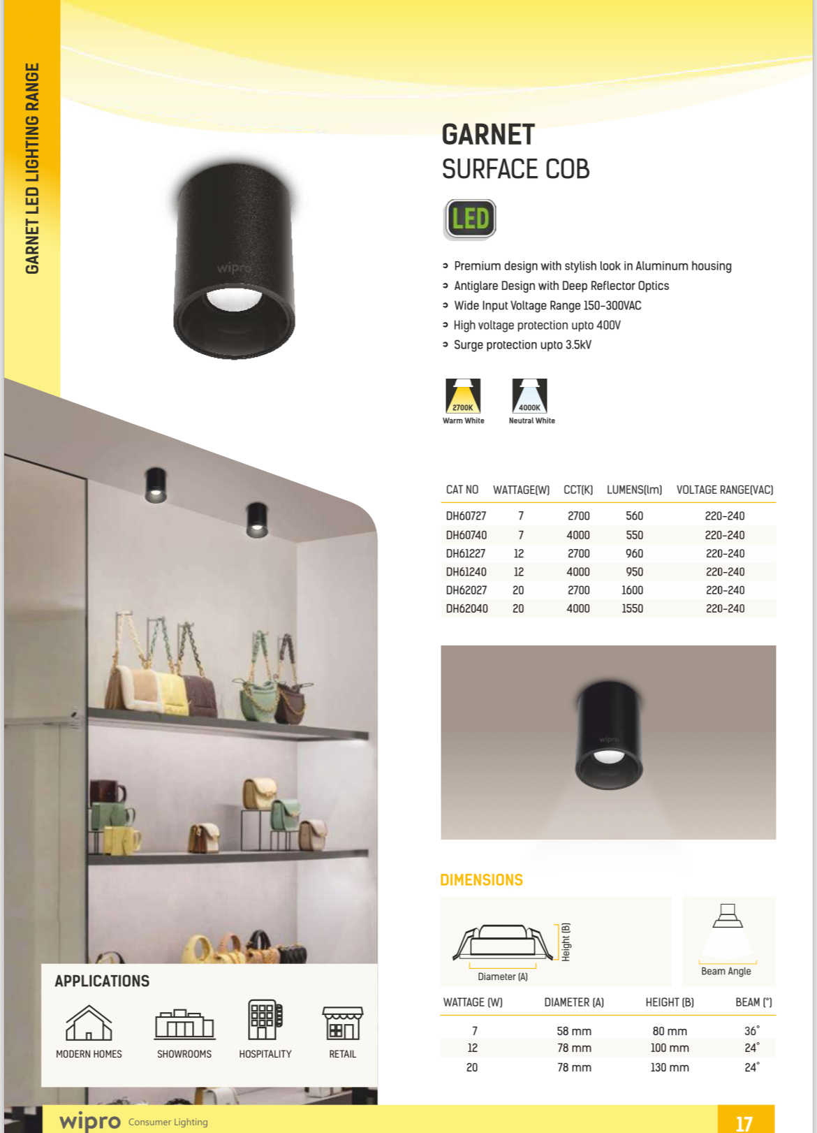 Wipro Garnet Surface COB cylinder 12 watt 2700K