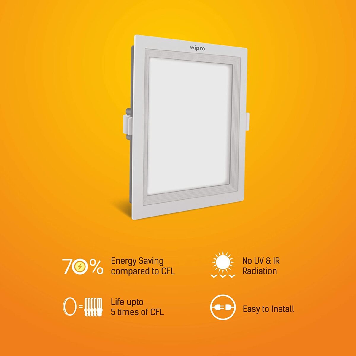 An ultra-slim panel with edge-lit LED’s that provide soft, energy-efficient light that is used for ambient lighting (indoor applications). It imparts a sense of luxury, with its classic design, aesthetics and quality light. Following features makes the Wipro Garnet Wave Slim 15W Square Panel Light the best in class lighting solution